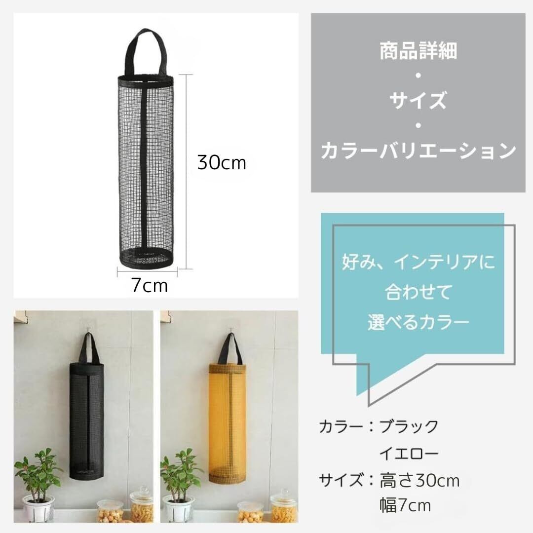 散らかるレジ袋を掘り込むだけで簡単収納。型崩れしにくく、スッキリ収納。お得な3個セットで、家中の整理整頓に大活躍!【フィットサイズ】約36.5*16 cm 【内容量】3個 【カラー】ブラック