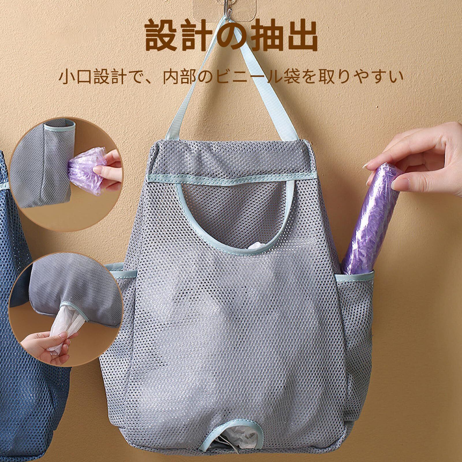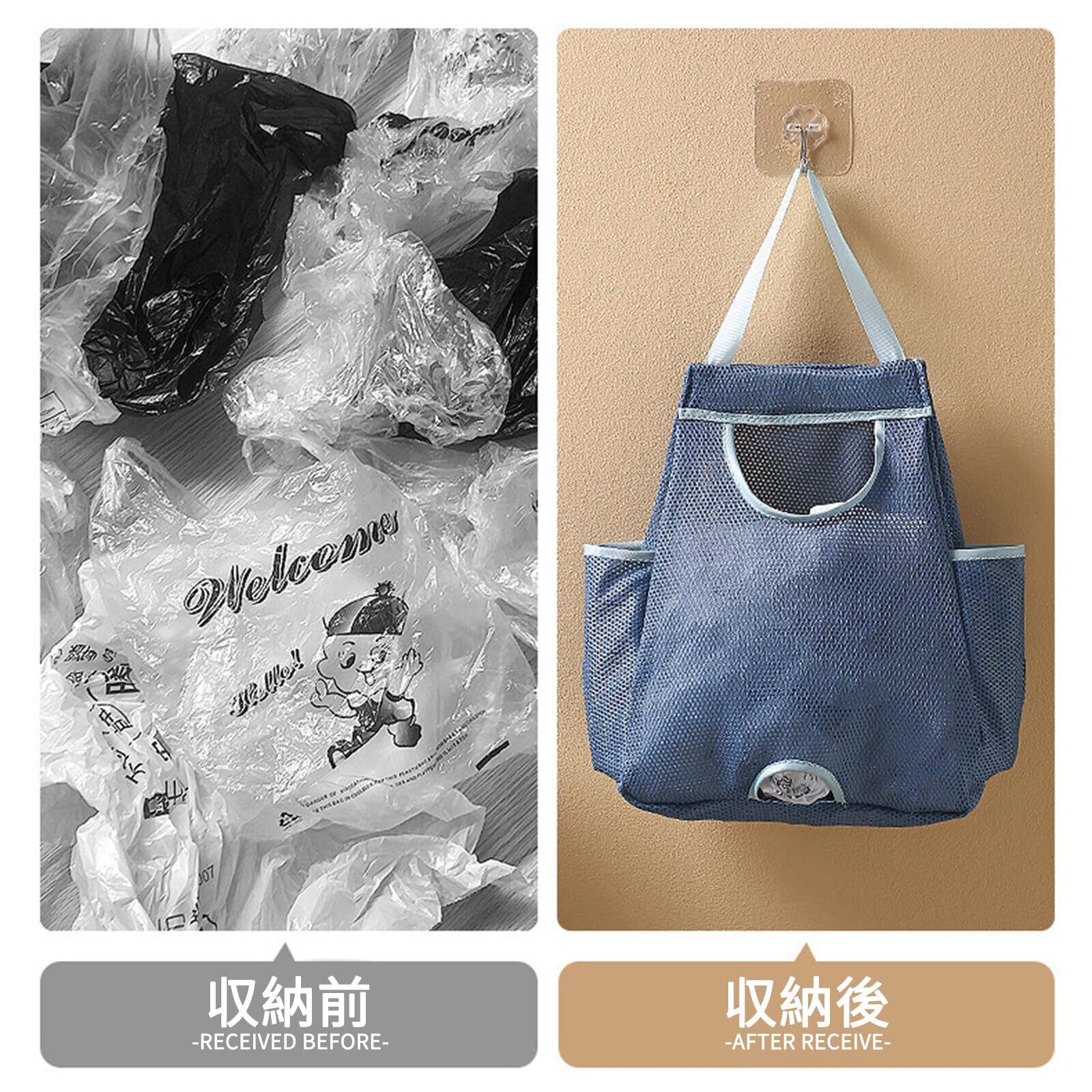 【省スペース】垂直空間を十分に利用して貯蔵するサスペンション設計を採用。フック、壁、押し入れ、戸棚、ドアノブなどに収納袋を掛け、底からビニール袋を取り出すだけで、底部には穴があり、広い上の入り口には、異なるサイズのビニール袋を簡単に折り畳むことができます。より多くのリサイクル可能なビニール袋を使用することができます。