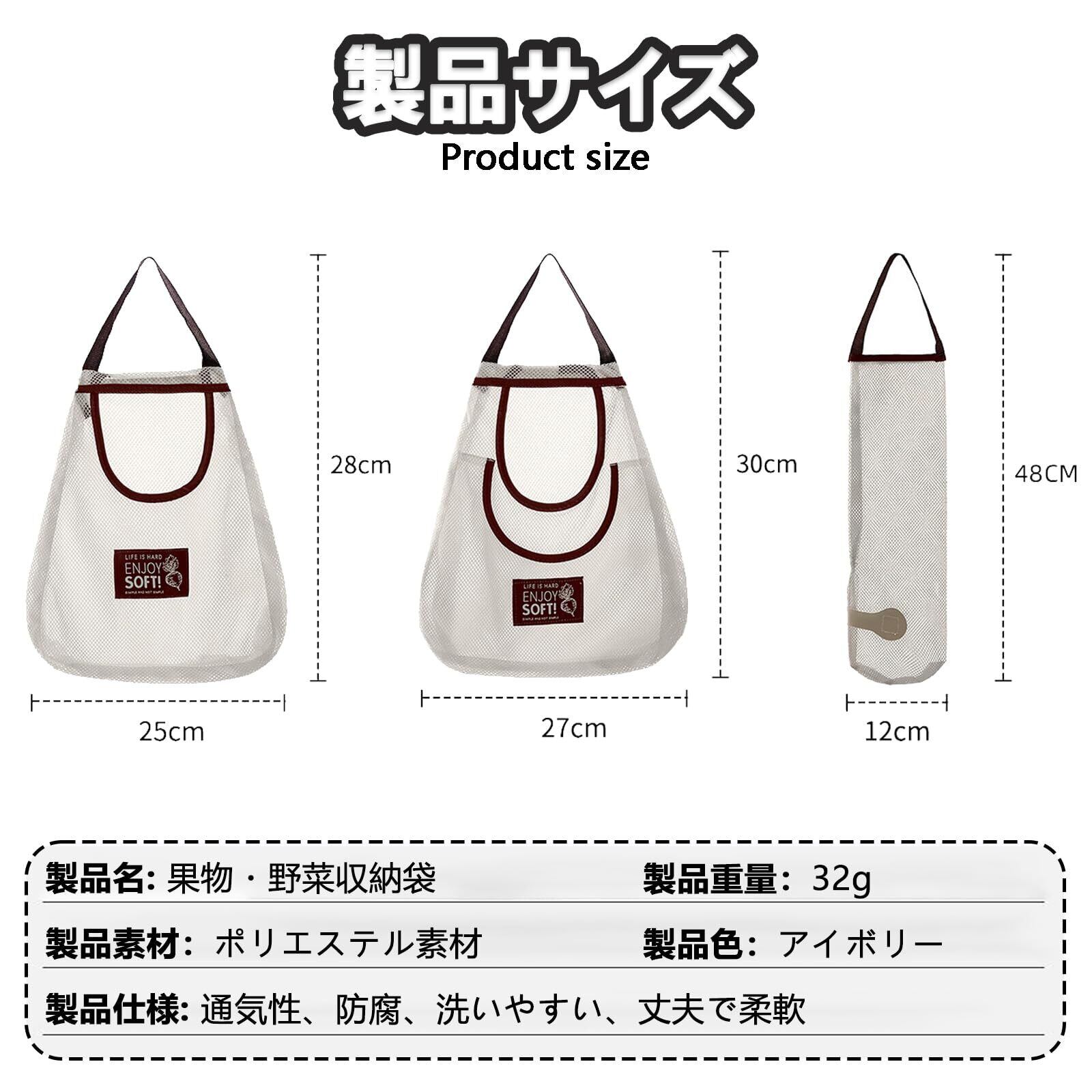 【通気性が良い】メッシュ通気性素材は細菌の繁殖を防ぎ、果物や野菜の保存期間を延ばし、新鮮さを保ちます、玉ねぎ 保存ネットは軽量で折りたたみ可能で、持ち運びに便利です、野菜や果物を入れても、袋の重さは負担になりません