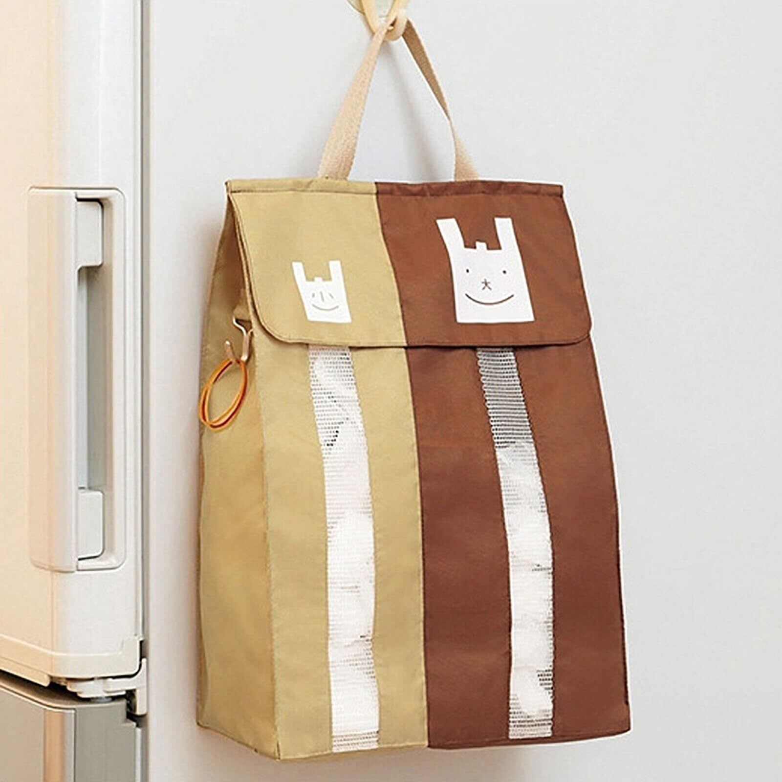 RemeeHi プラスチックバッグホルダー レジ袋ストッカー ゴミ袋収納 中身が見える 大小仕分け キッチン収納サッと取り出せ便利 (茶色), Normal, ブラウン, trash bag-01