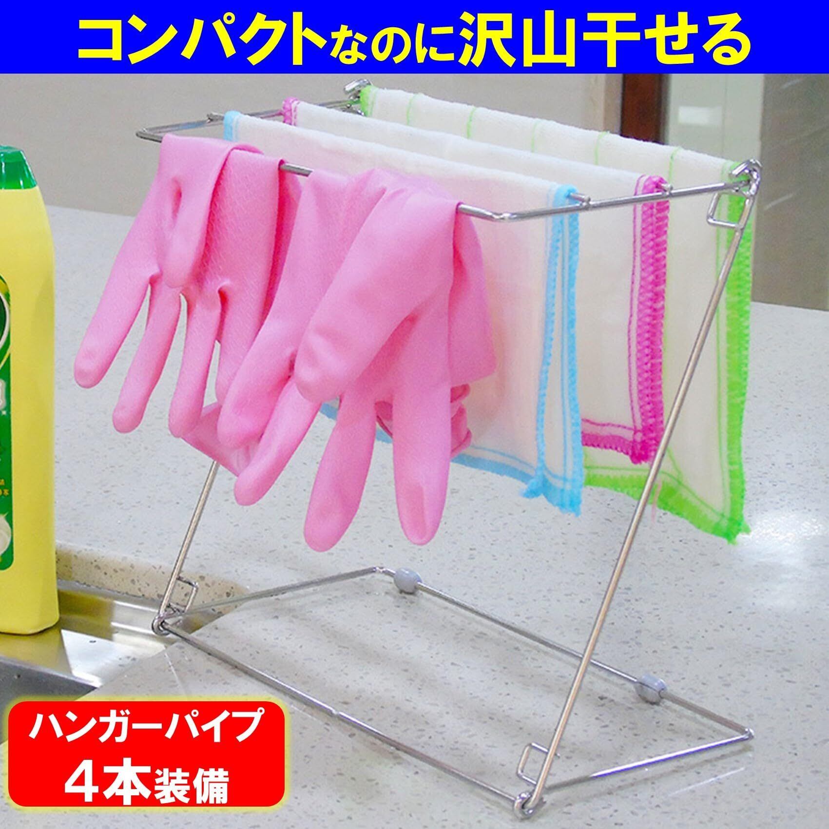 布巾スタンドにはハンガーパイプが4本装備され、横幅28cmとコンパクトながら、布巾を4枚干すことができますので、料理やお掃除で使用した布巾を大凡全て干すことが可能です。ベランダなど別の場所に干しに行く手間もなくキッチン内で完結することができ能率的です。