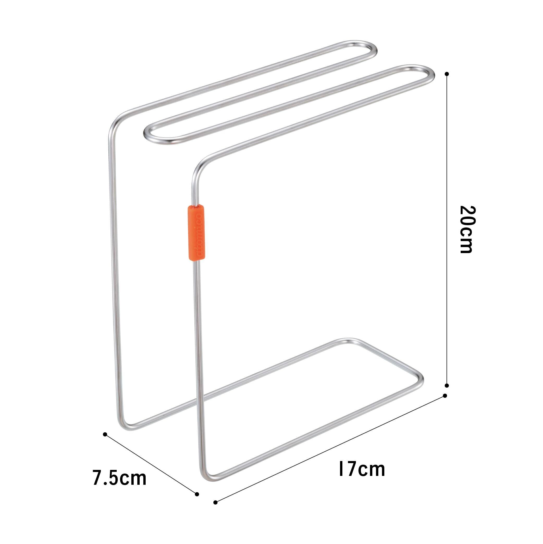 乾かすスタイル、掛けるスタイル、ストックするスタイルと、立てる向きを変えるだけで、暮らしに合わせた使い分けが簡単にできます。サビに強いステンレス素材を採用しているので、汚れにも強く長く使える安心感があります