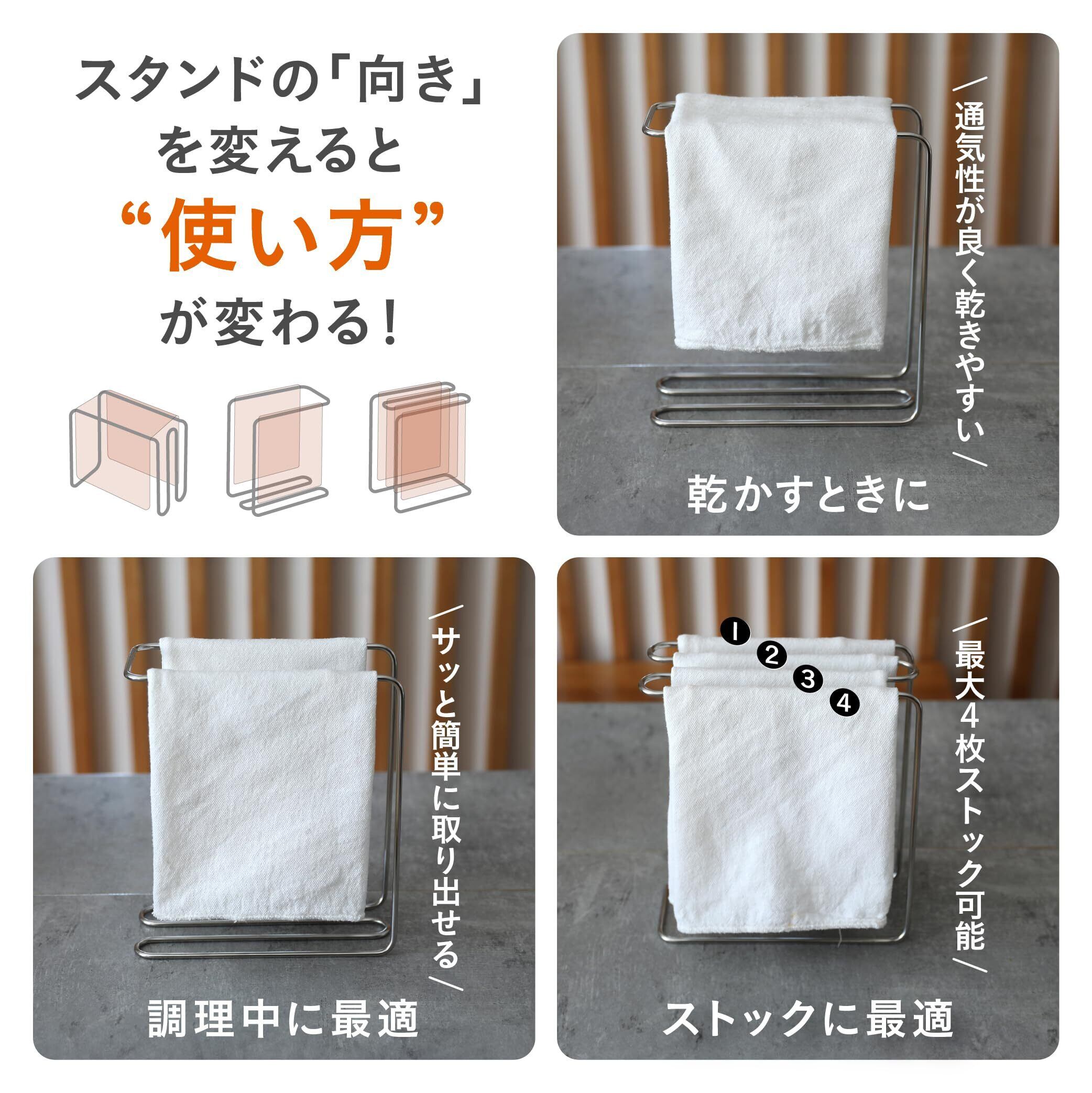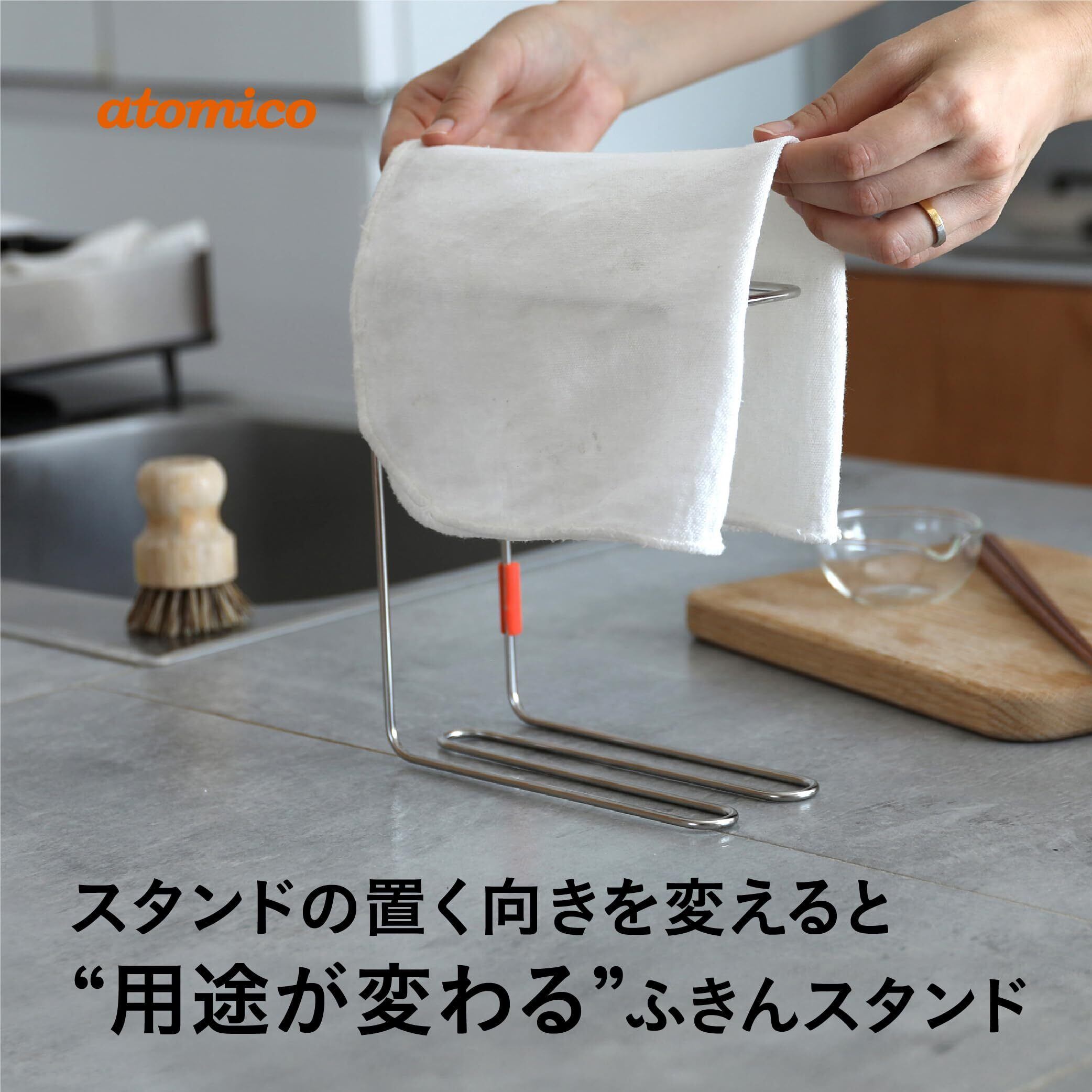 濡れたふきんの置き場に困る、乾いたふきんをキレイにストックしたい、調理中にサッと使いたい。そんなキッチンの小さな不満を解消してくれる「atomico ふきんスタンド」立てる向きを変えるだけで3通りの使い方ができ、忙しい毎日の手間を減らしてくれます