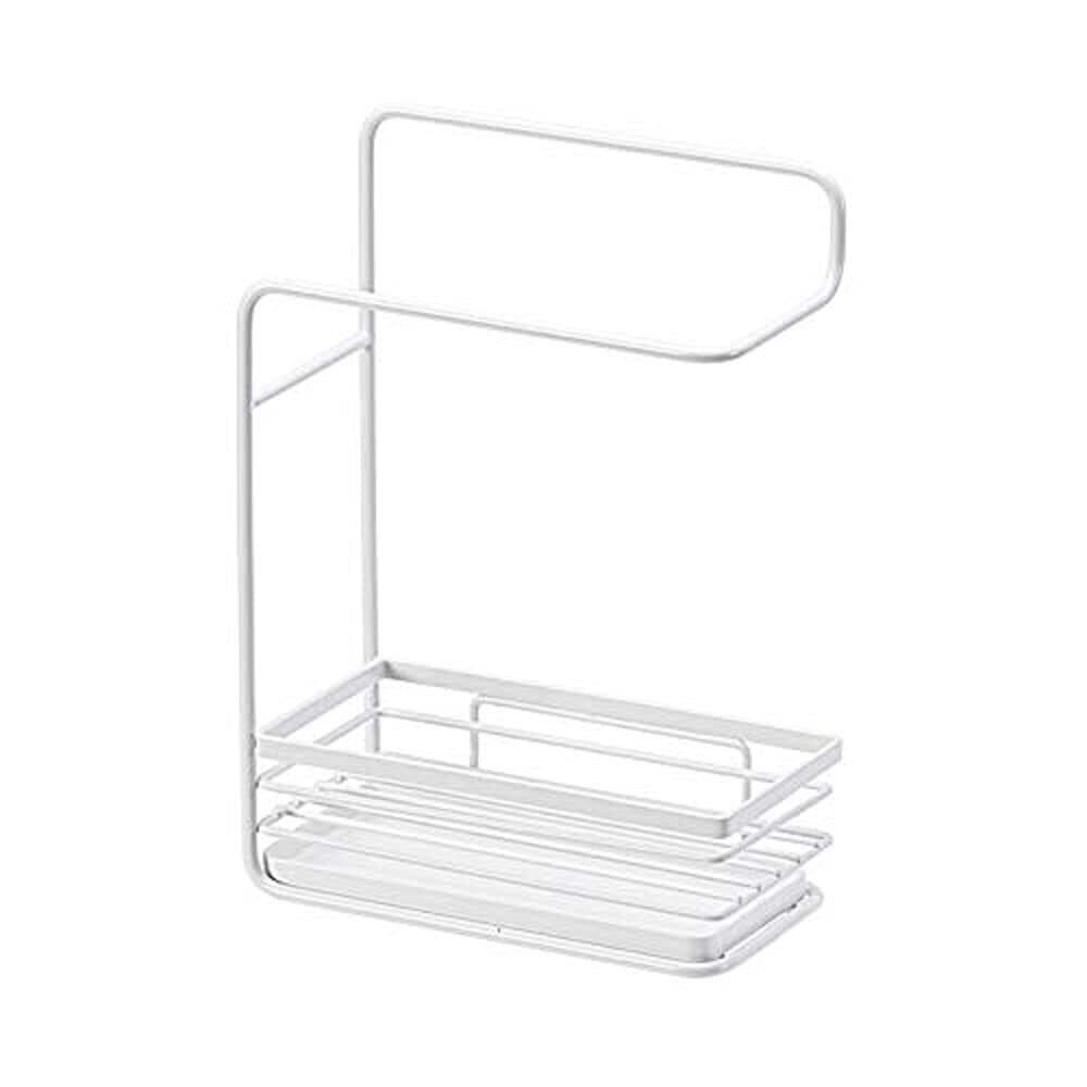 【布巾掛けスタンド&スポンジ置き】:ふきん掛けスタンドとスポンジ置きが一体型になった水受けトレー付きのラック。