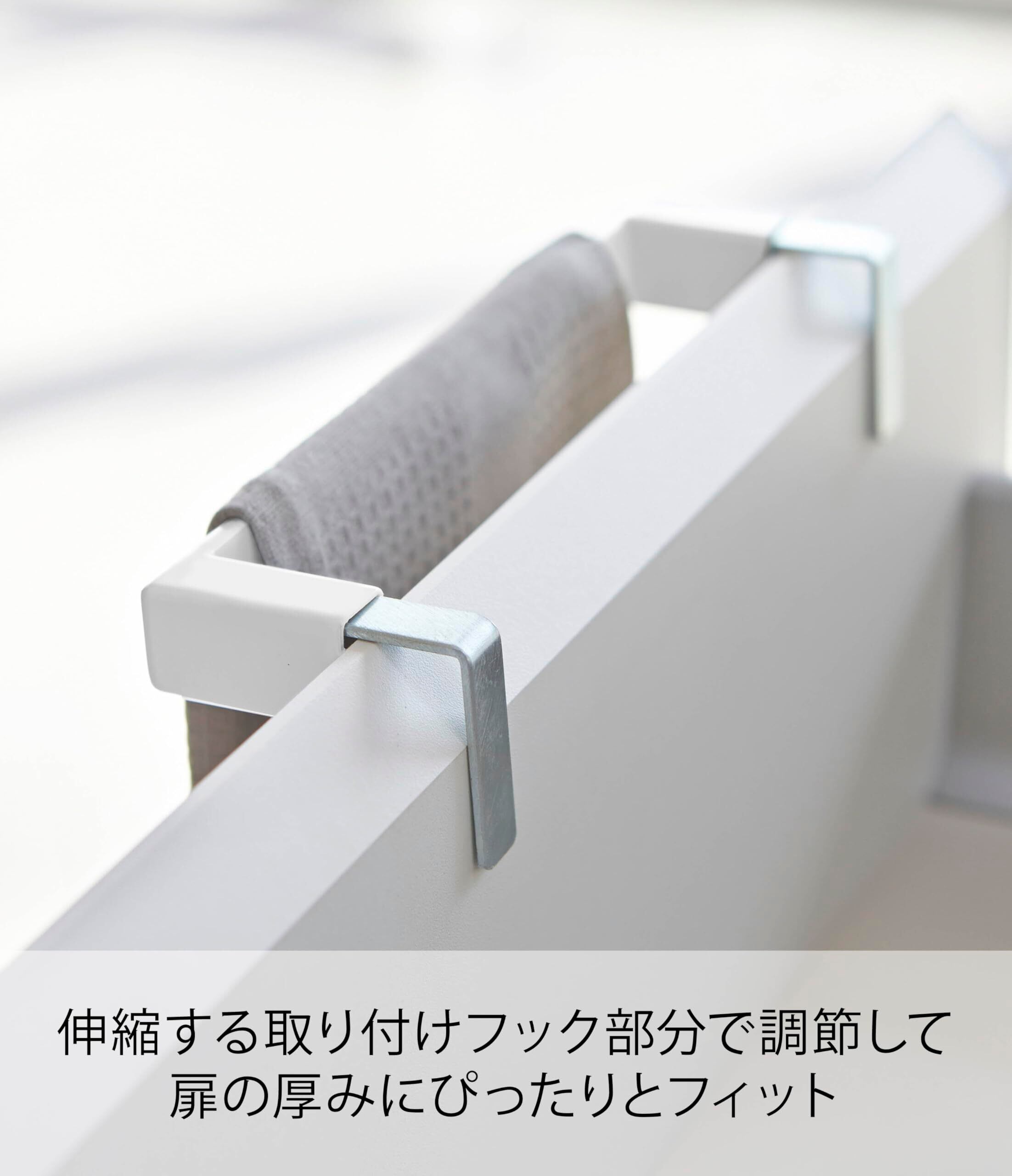 山崎実業(Yamazaki) タオルハンガーバー ホワイト 約W19XD6~7XH4cm プレート 扉の厚みにピッタリ 調節 タオル掛け 4748
