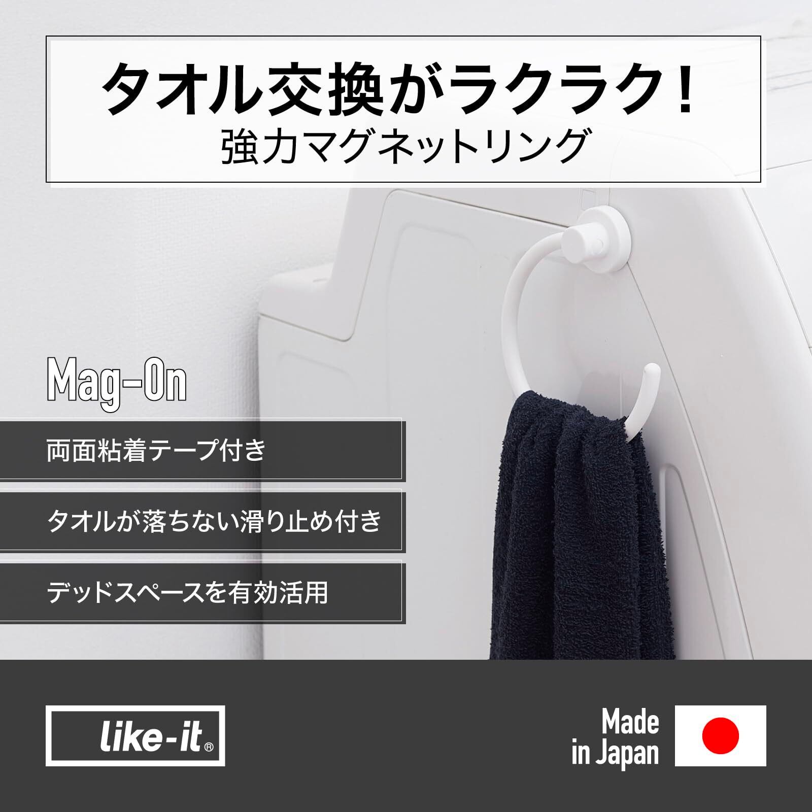 ライクイット (like-it) ランドリー 小物収納 マグネット収納 強力マグネット 洗濯機 タオル掛け リング ホワイト Mag-On 8047