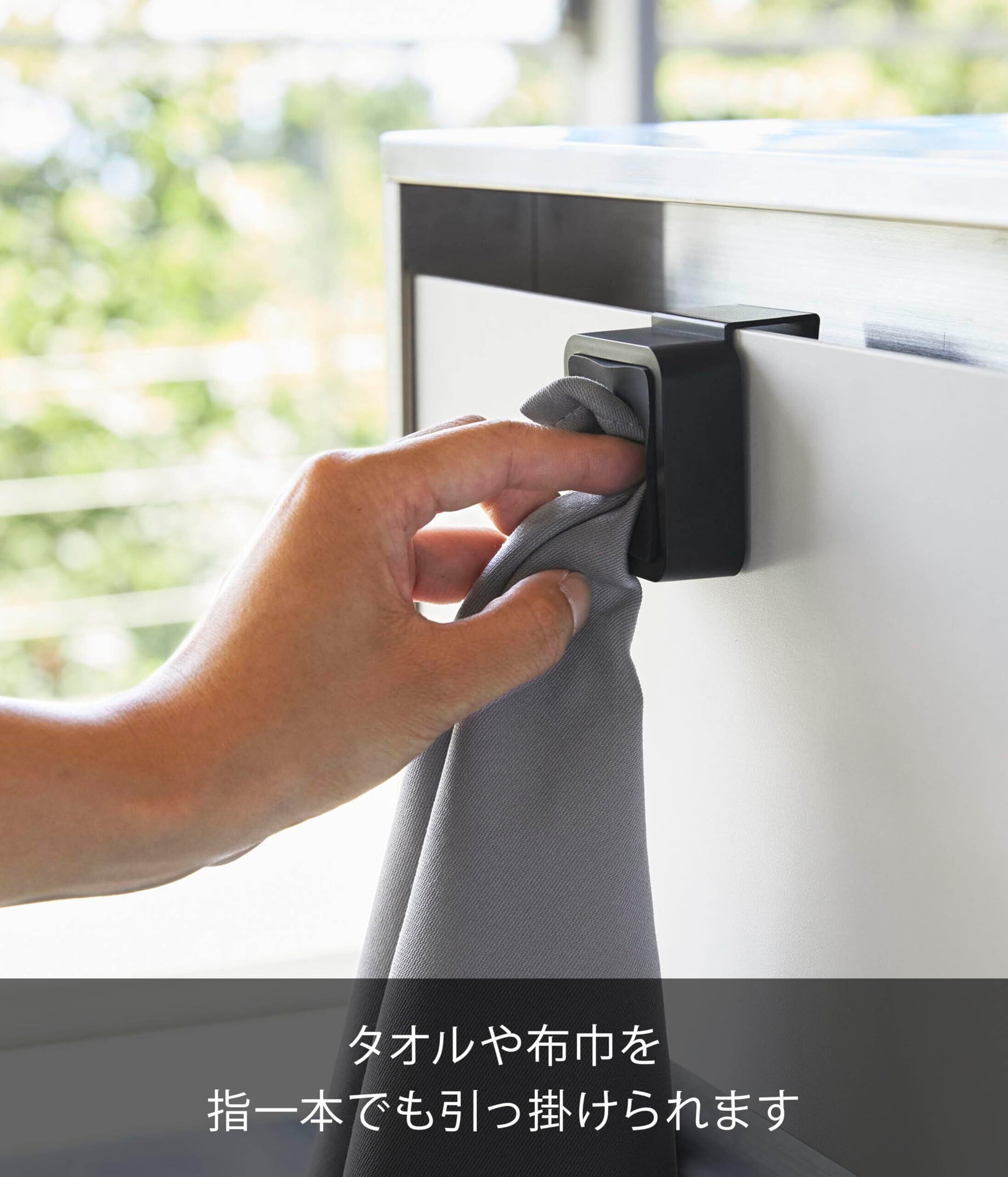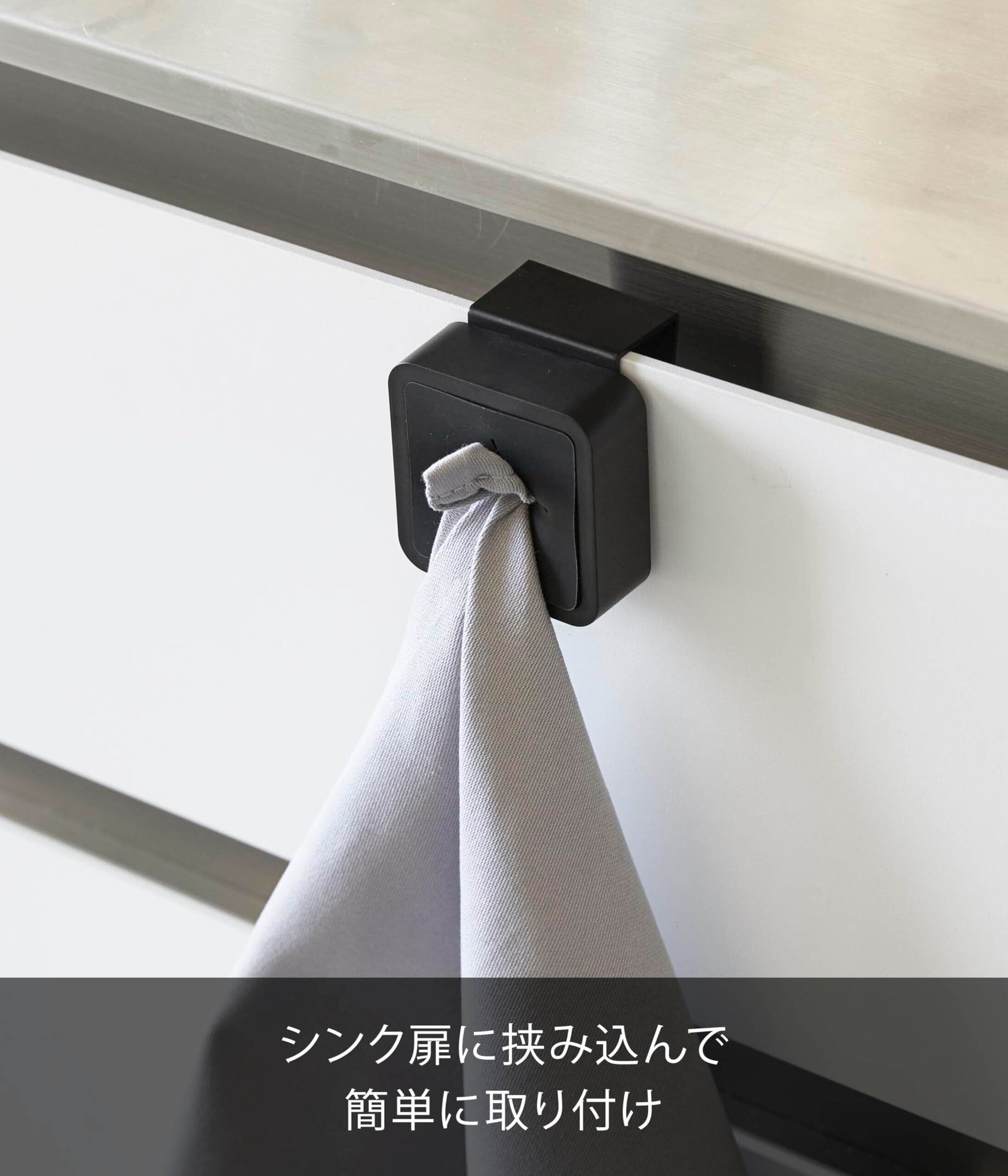 山崎実業(Yamazaki) シンク扉 タオルホルダー ブラック 約W5.5XD4.5XH6cm タワー tower タオル掛け 戸棚下 4251