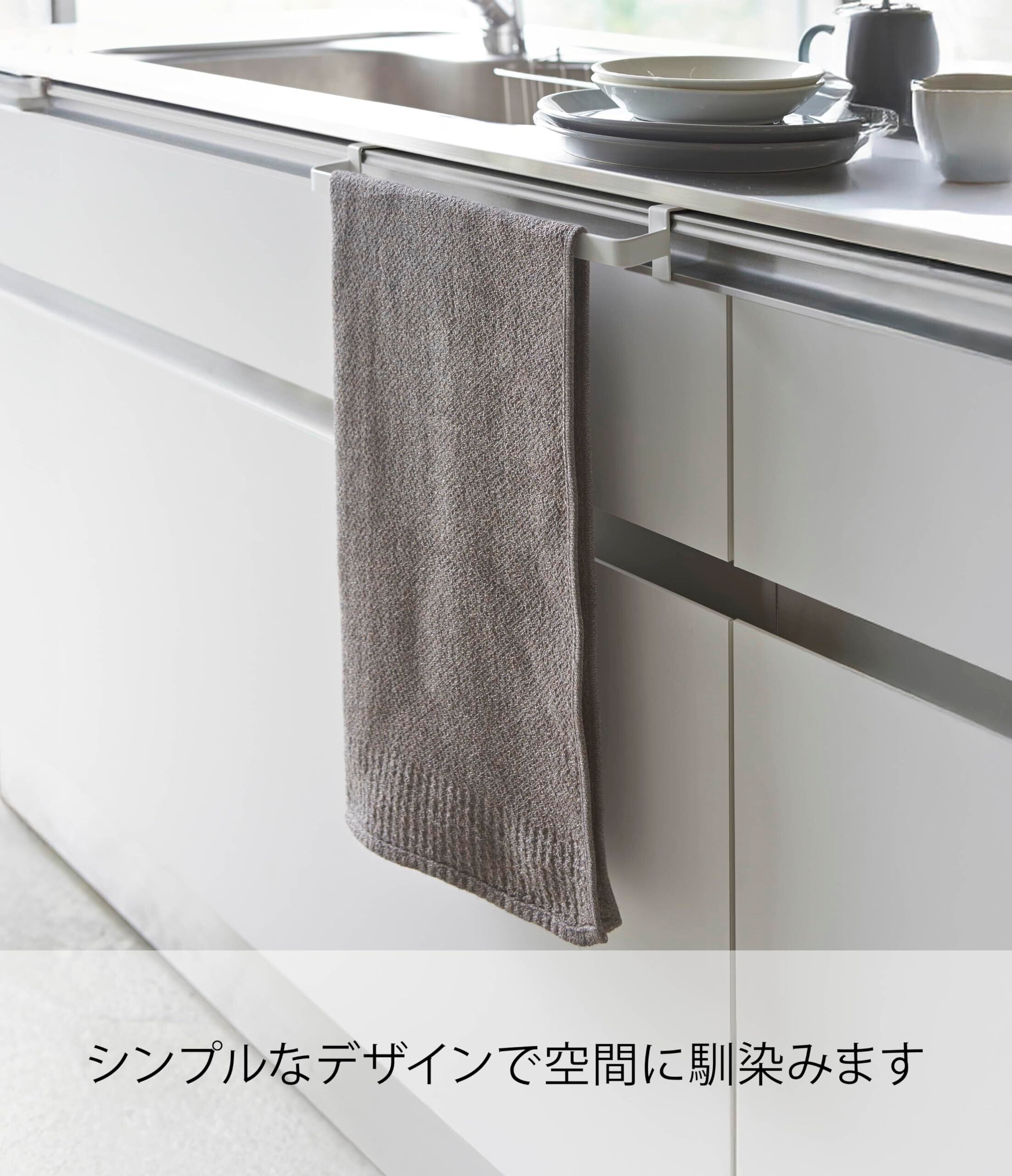 シンク扉に簡単取り付けのタオルハンガー。