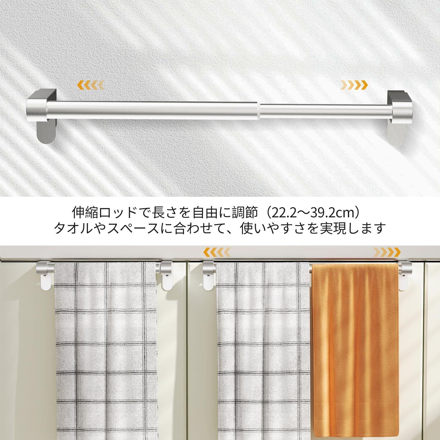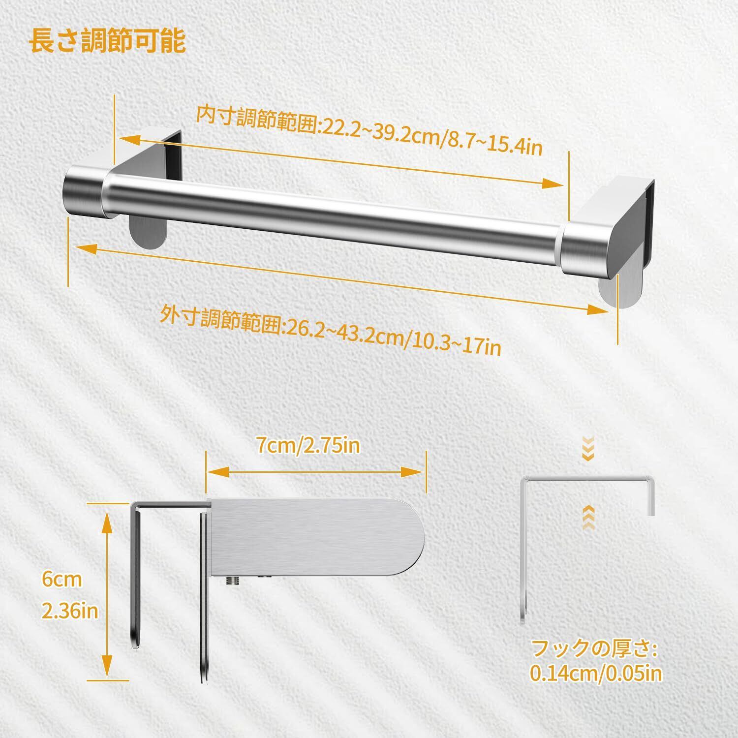 【拡張可能なデザイン】タオル掛けの長さを調節できるので、より多くの選択肢があります。タオルハンガーは26.2~43.2CMの間で調整でき、幅広い用途に使用できます。 長さ調整プロセス中にダンピング効果が追加され、エクスペリエンスを最適化します。