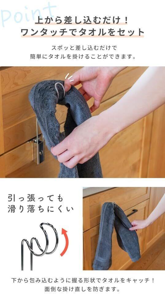 上からスポッと差し込むだけで簡単にタオルを掛けることができます
