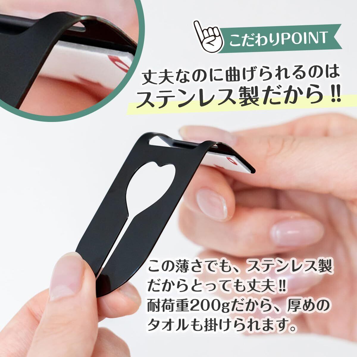 穴あけ不要!強力粘着がタオルをしっかり固定!ズレない!落ちない!薄くてコンパクトなので場所を取らない!タオルの端をキュッと差し込んでスライドするだけの簡単設計