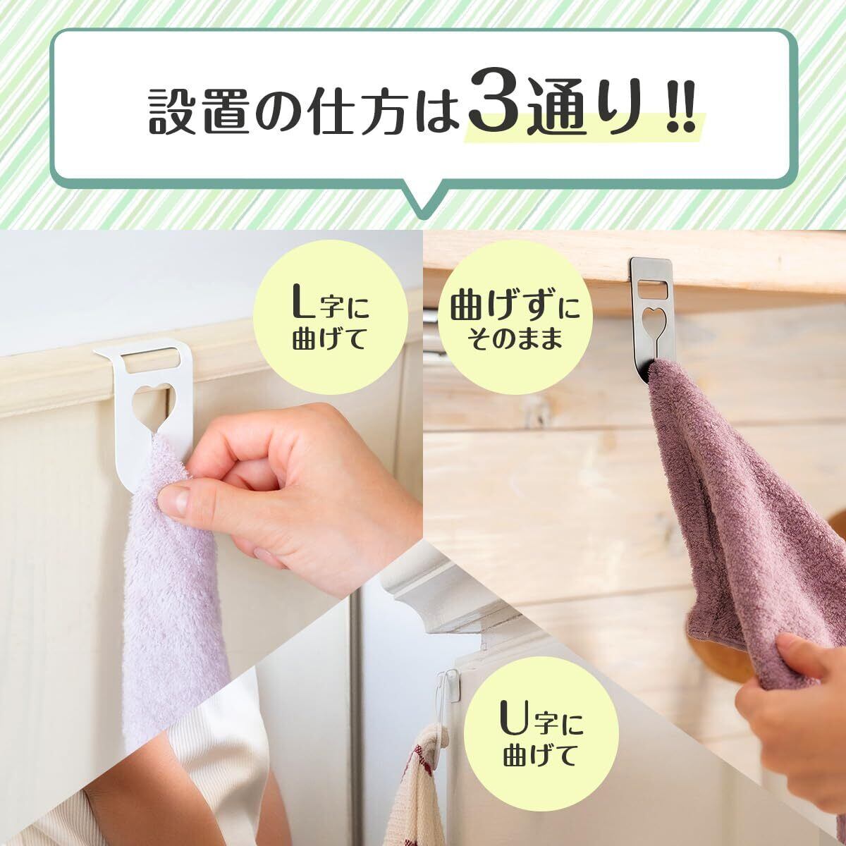 取付方法は3パターン(曲げずにそのまま・L字に曲げて・U字に曲げて)色々な場所に大活躍するタオル掛けです。