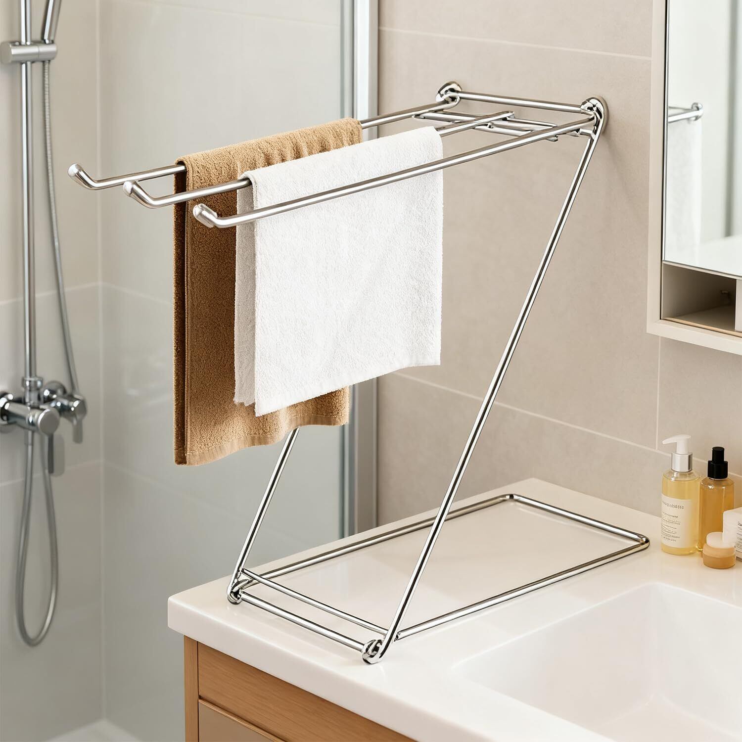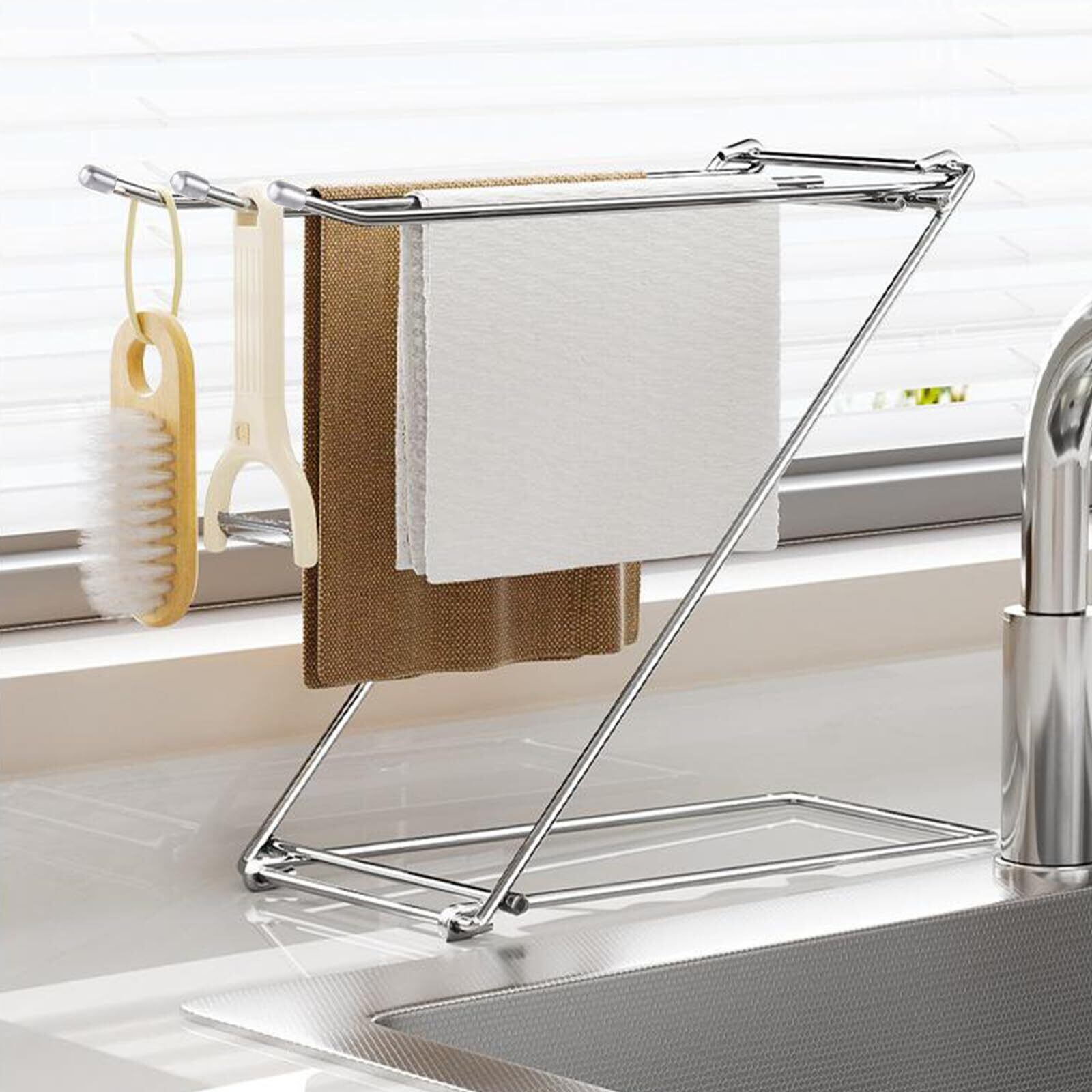 タオルハンガー ステンレス製 折りたたみ 布巾掛け 雑巾掛け デスク収納 コンパクト軽量 多機能収納アイテム 家庭用