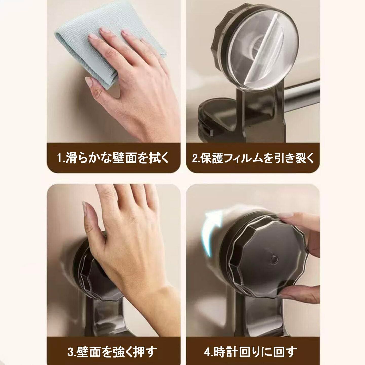 簡単取り付け:ドリルや工具が不要な免穴加工で、壁面を傷つけずに簡単に設置できます。吸盤をきれいな表面に押し当てるだけで、すぐに使用可能です。