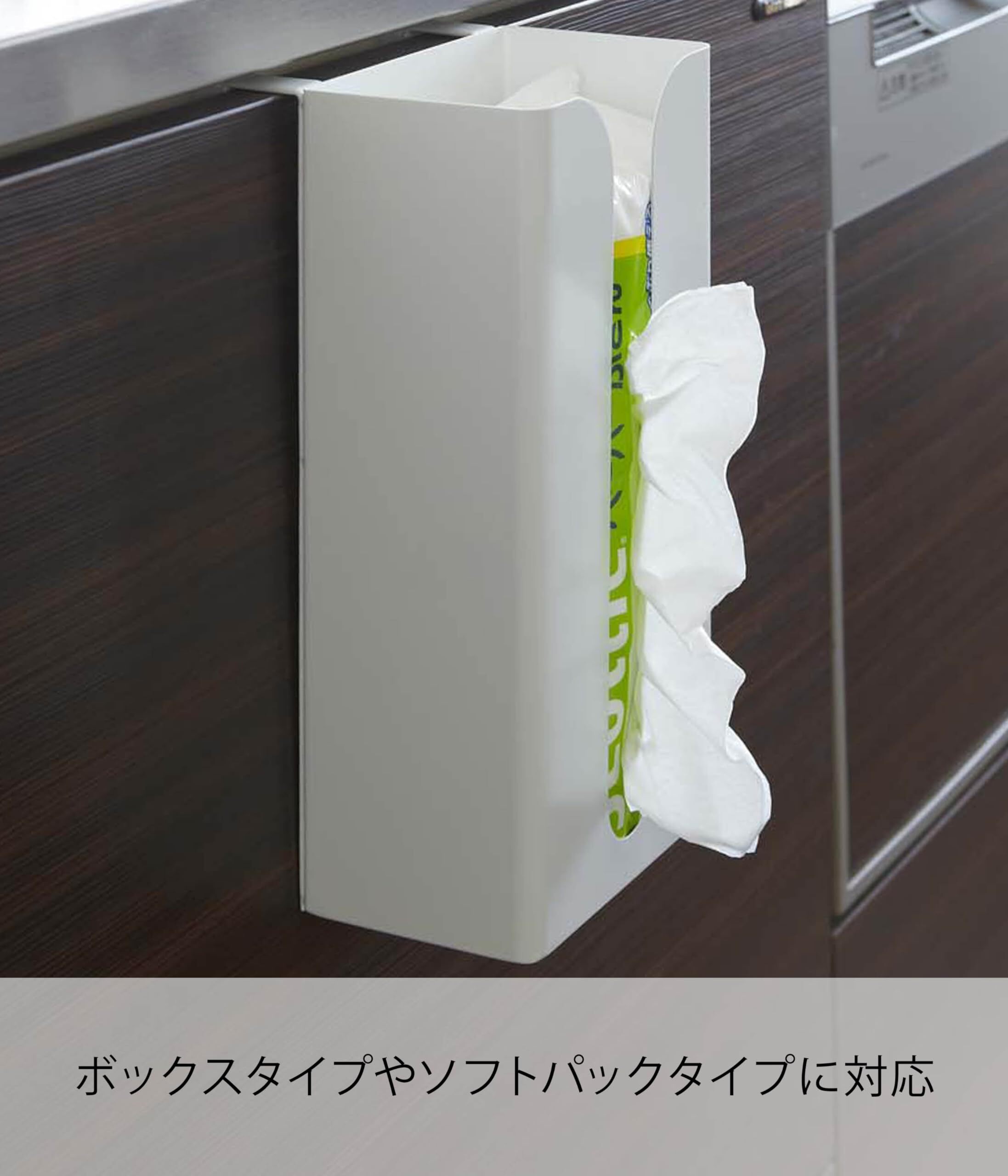 ボックスタイプのキッチンペーパーやティッシュボックスも収納可能