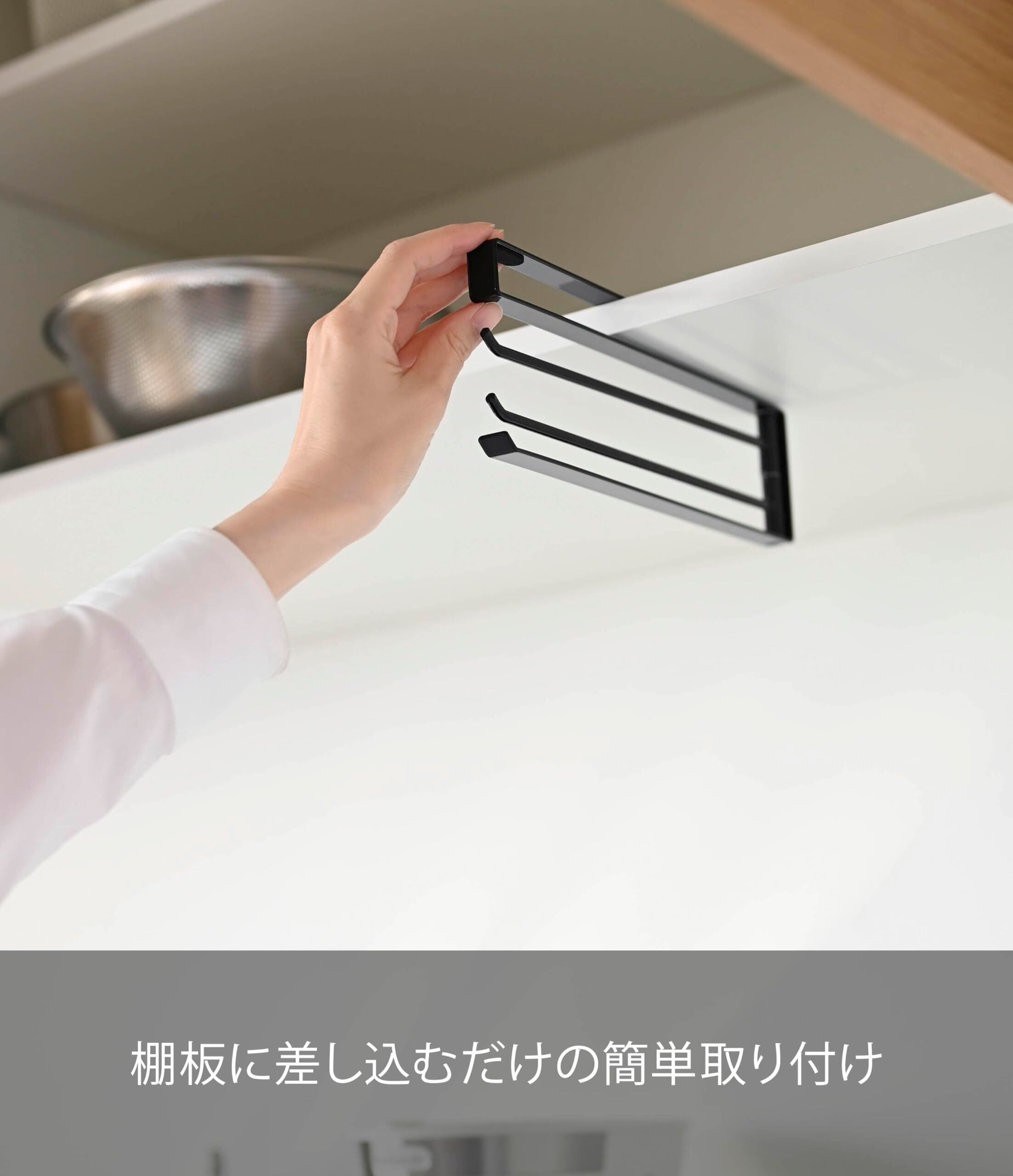 山崎実業(Yamazaki) 戸棚下布巾ハンガー ブラック 約W1.5×D26×H9.5cm タワー 7114