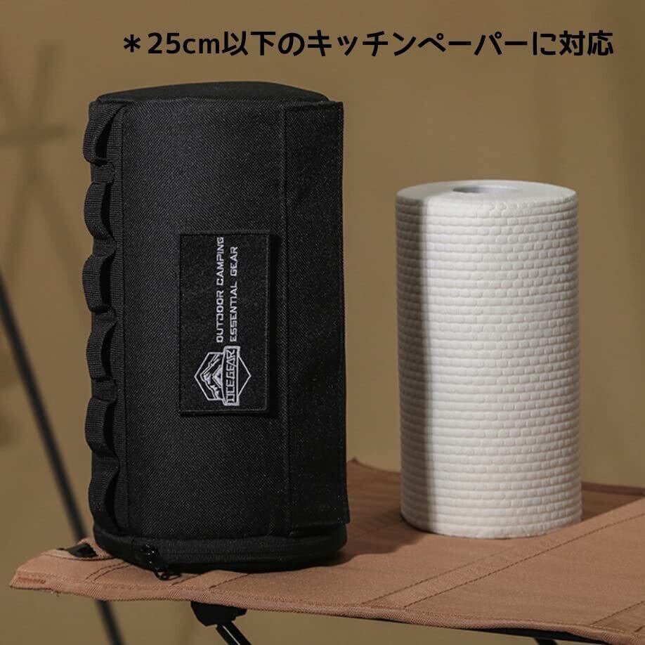 ritutou キッチンペーパーホルダー 吊り下げ 26cm キッチンタオルケース ペーパータオルホルダー 撥水 ロールペーパーケース 登山 ロールペーバーホルダー ロールペーバータオルボックス アウトドア キャンプ用品 カバー 部屋 車 (ブラック)