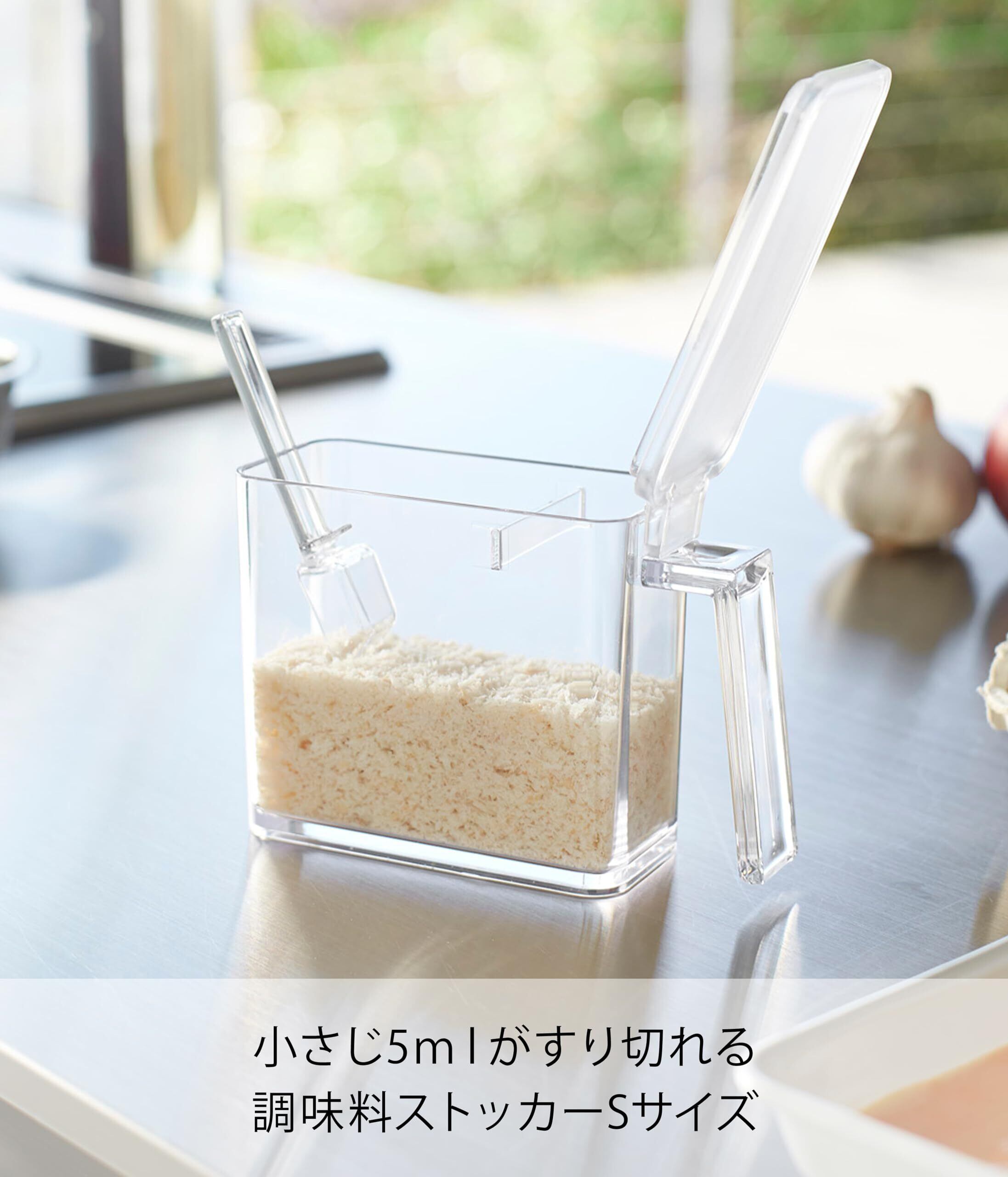 小さじ5mlがすり切れる軽量スプーン付き調味料ストッカーSサイズ。1~2人暮らしにピッタリ!スリムに置ける350mlサイズ。