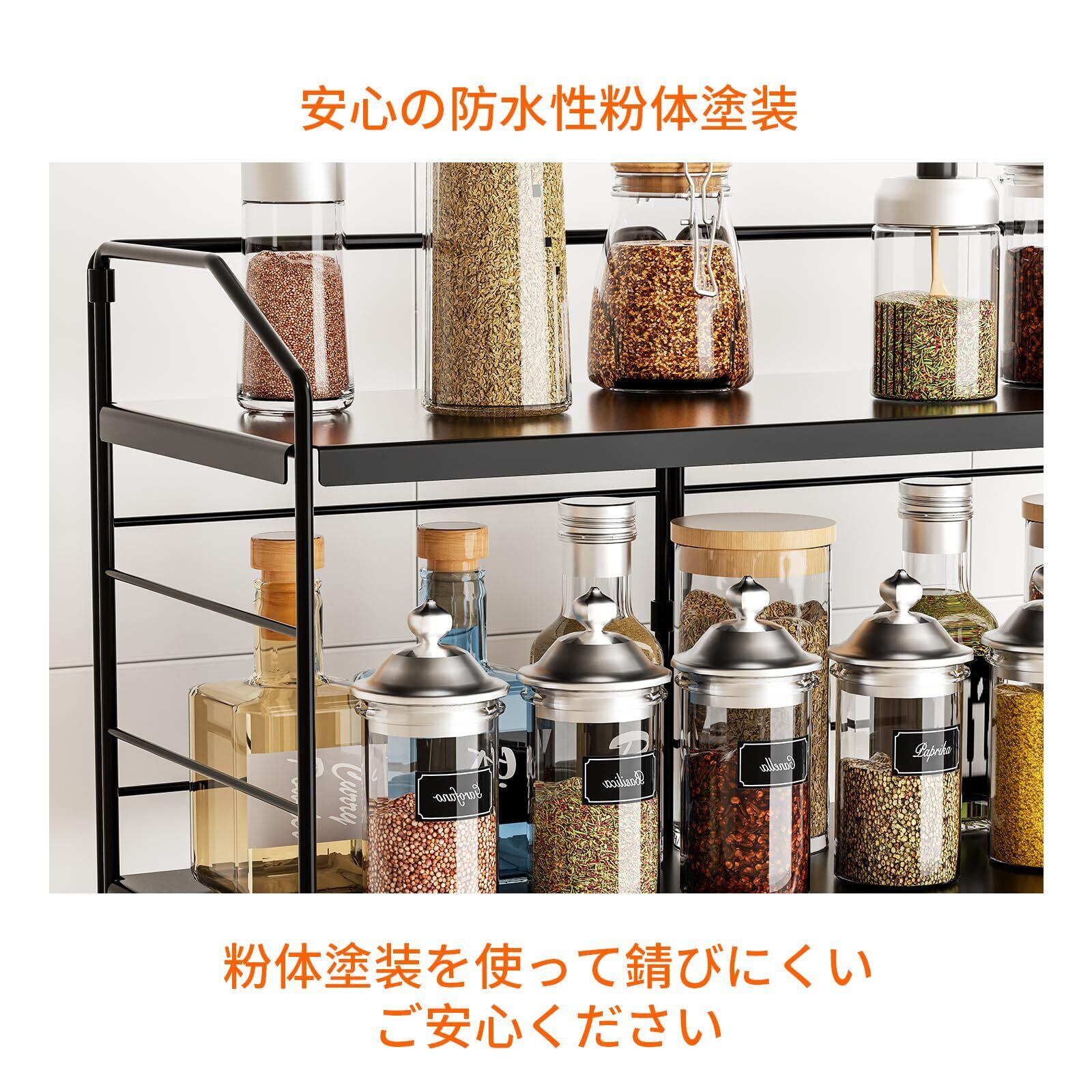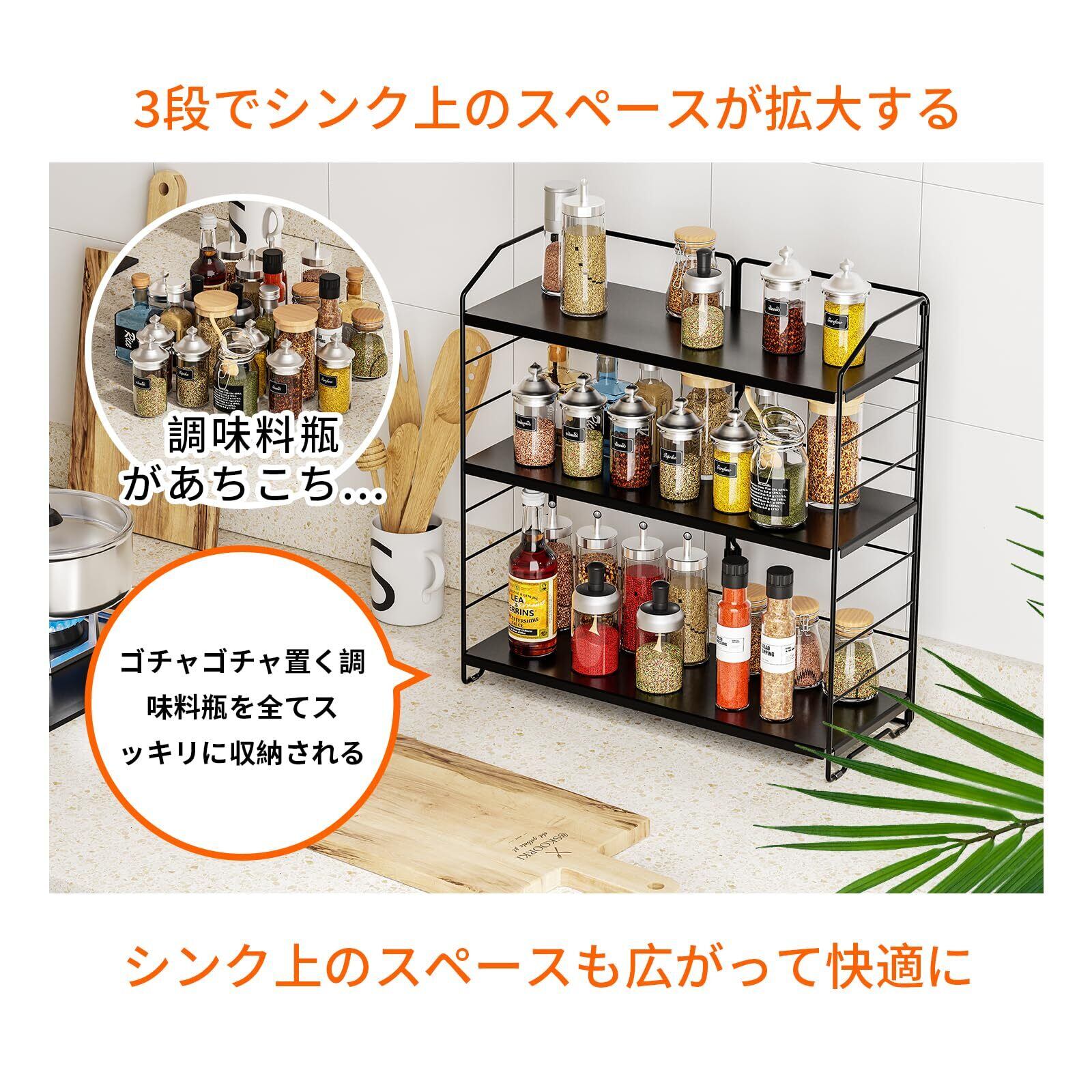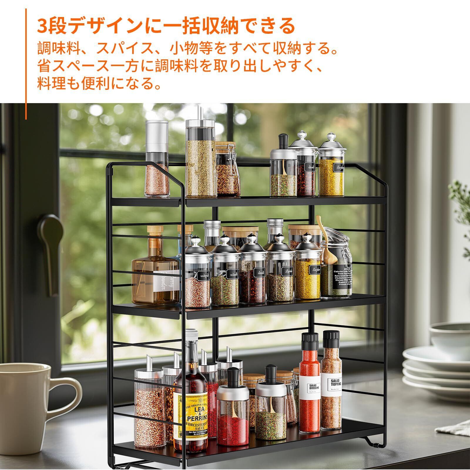 BOIVSHI 調味料ラック 3段式 調味料収納 スパイスラック 置き型 三段調整可能 キッチン収納ラック 調味料棚 調味料入れ 調味料ケース バスルーム・台所収納 小物収納 多機能型 組み立てが簡単 ブラック