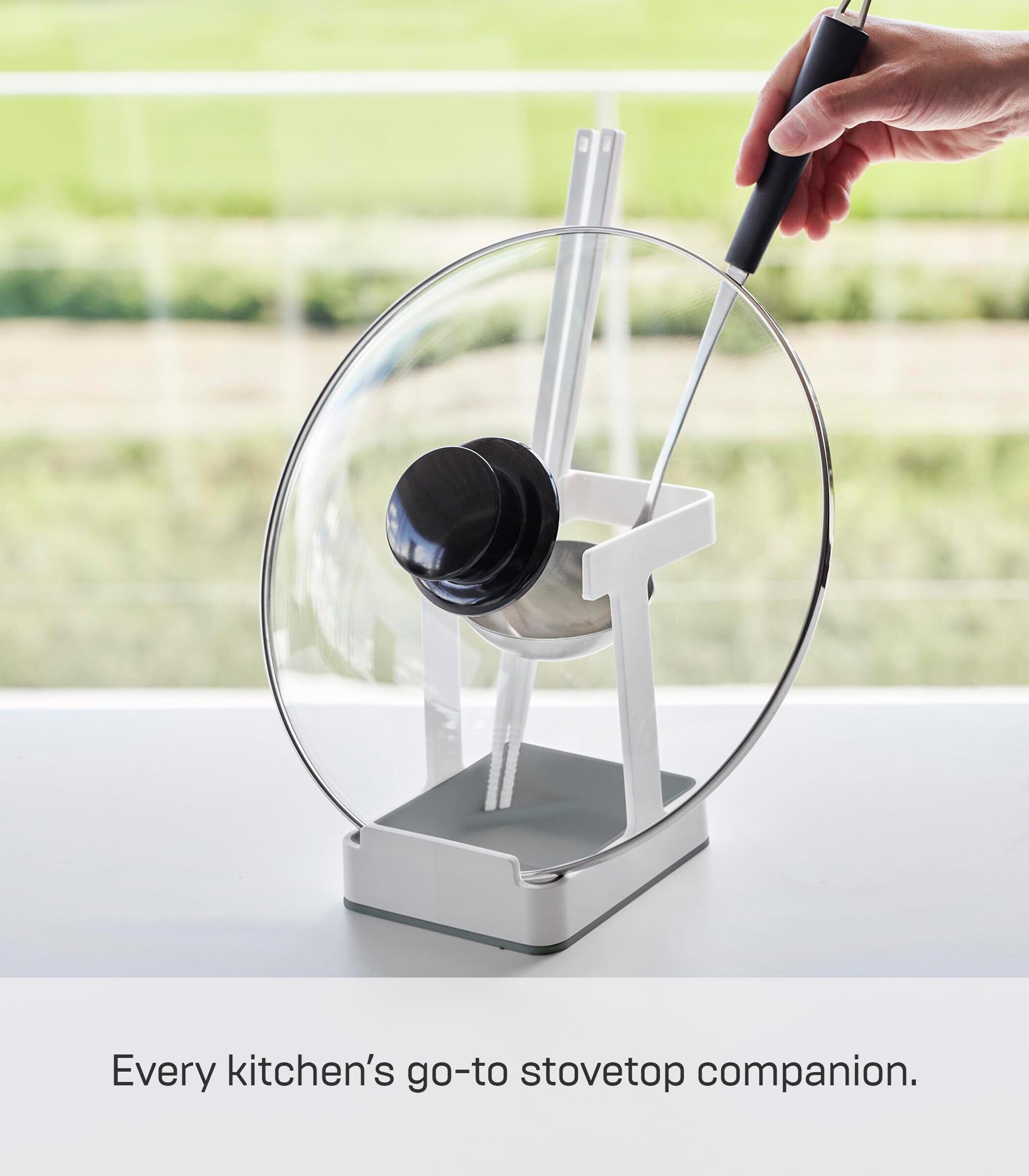 山崎実業(Yamazaki) お玉 & 菜箸 & 鍋蓋スタンド ホワイト 約W10.7×D13.5×H15cm プレート Plate 食洗機対応 お玉置き お玉スタンド 1765