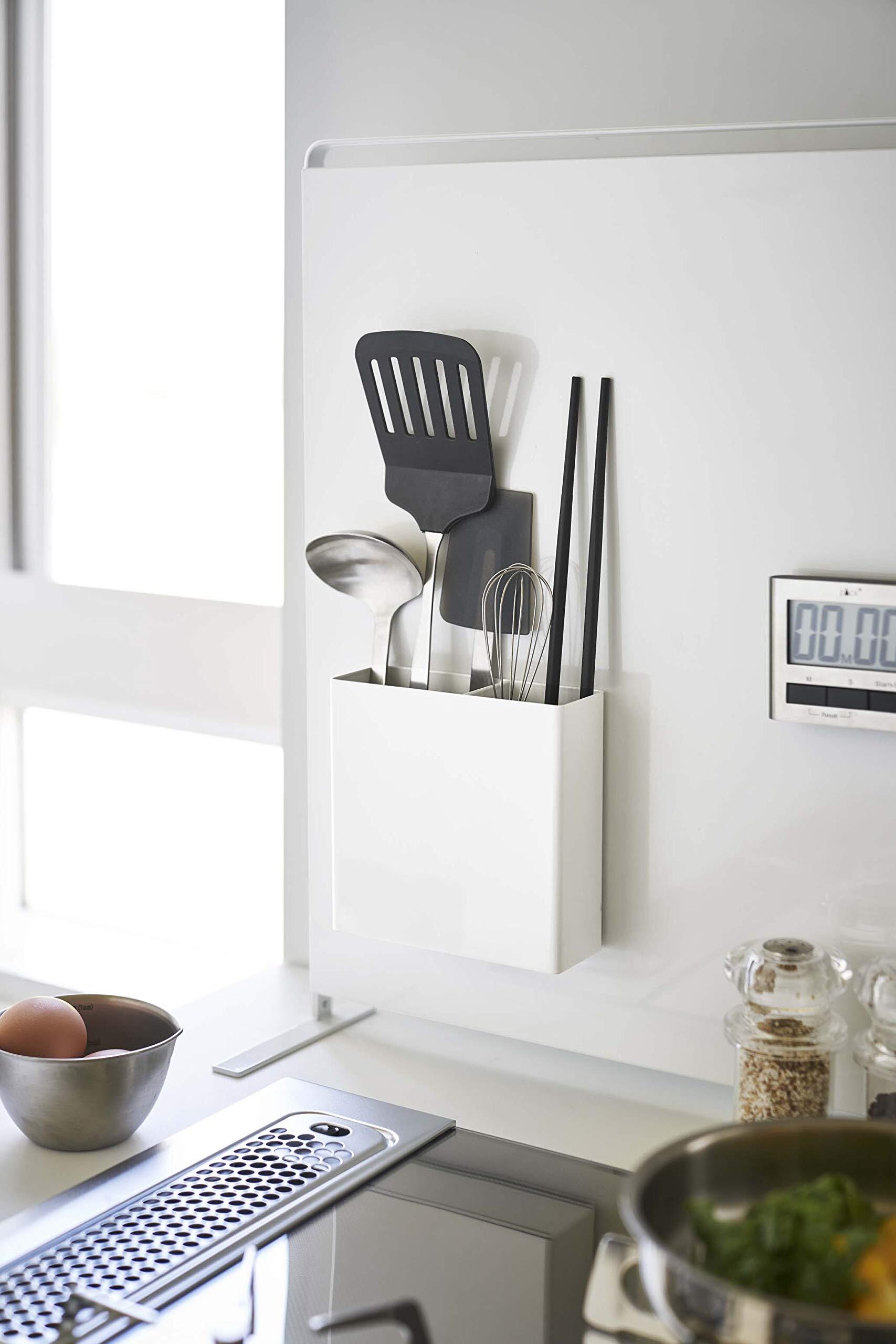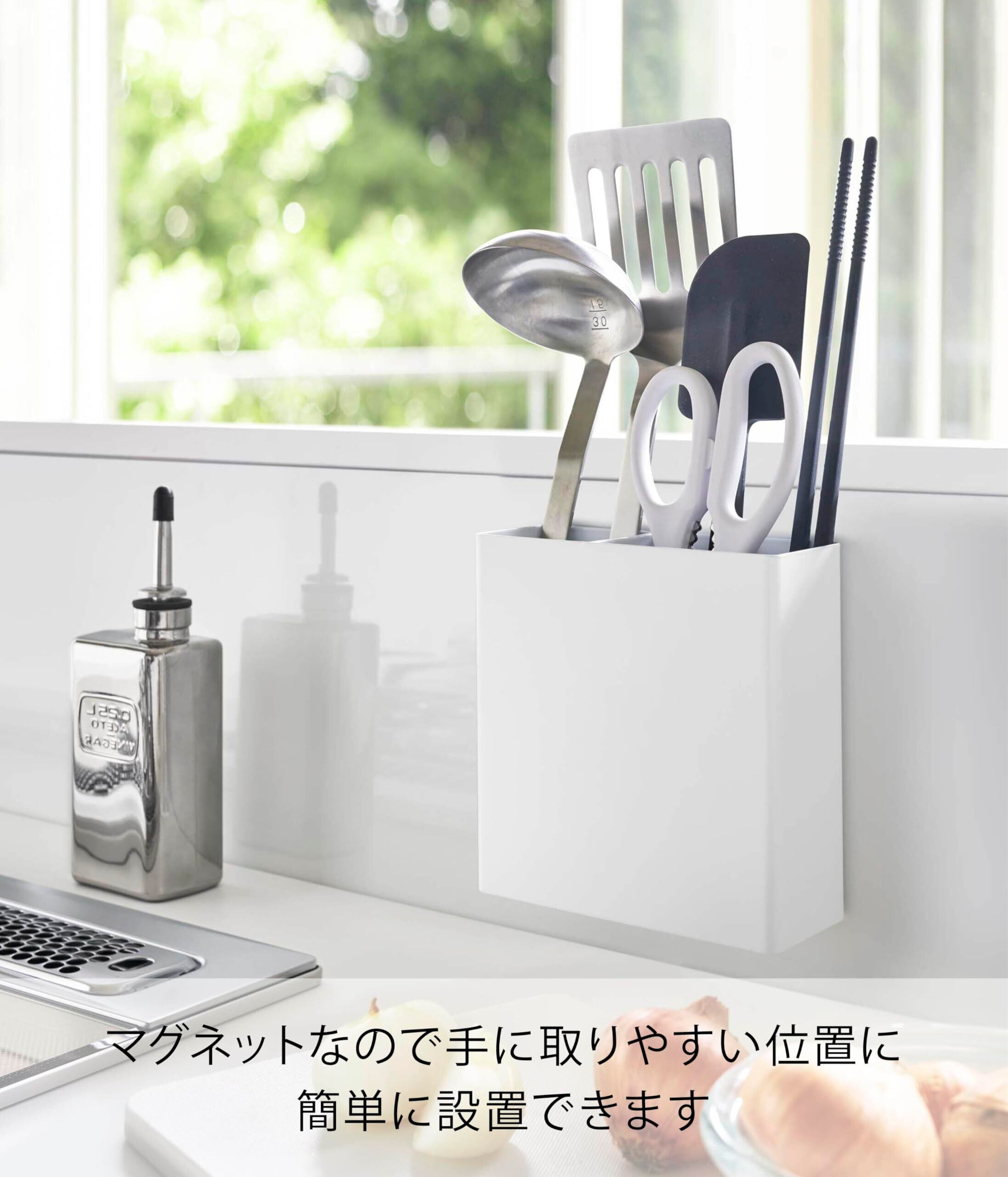山崎実業(Yamazaki) マグネット キッチンツールスタンド ホワイト 約W13.5XD5XH14cm タワー 浮かせる収納 簡単取り付け 5146