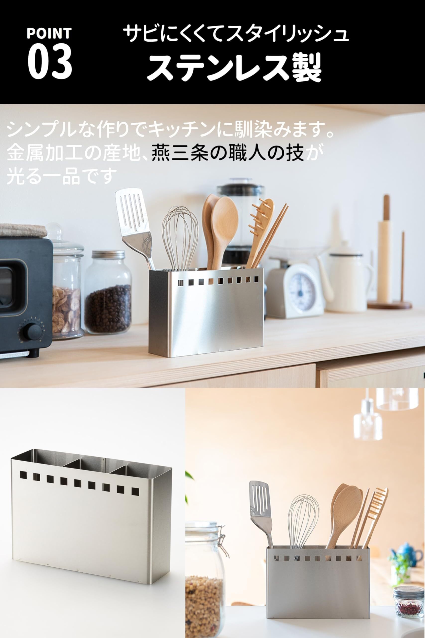 be worth style ビーワーススタイル キッチンツールスタンド スリム 18-8ステンレス(サビに強い) 仕切り2枚 クッション付き 幅22.5×奥行7×高さ15cm シルバー MM-700021