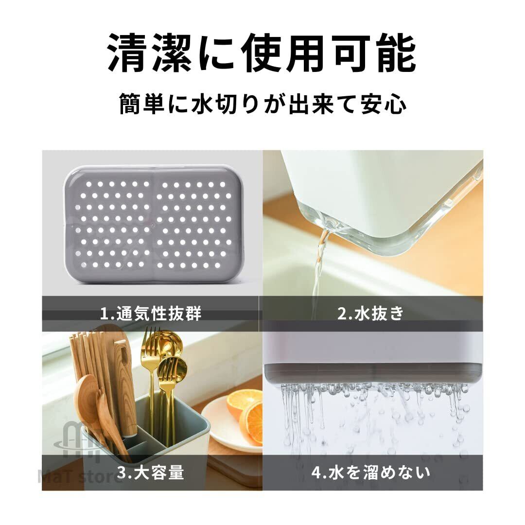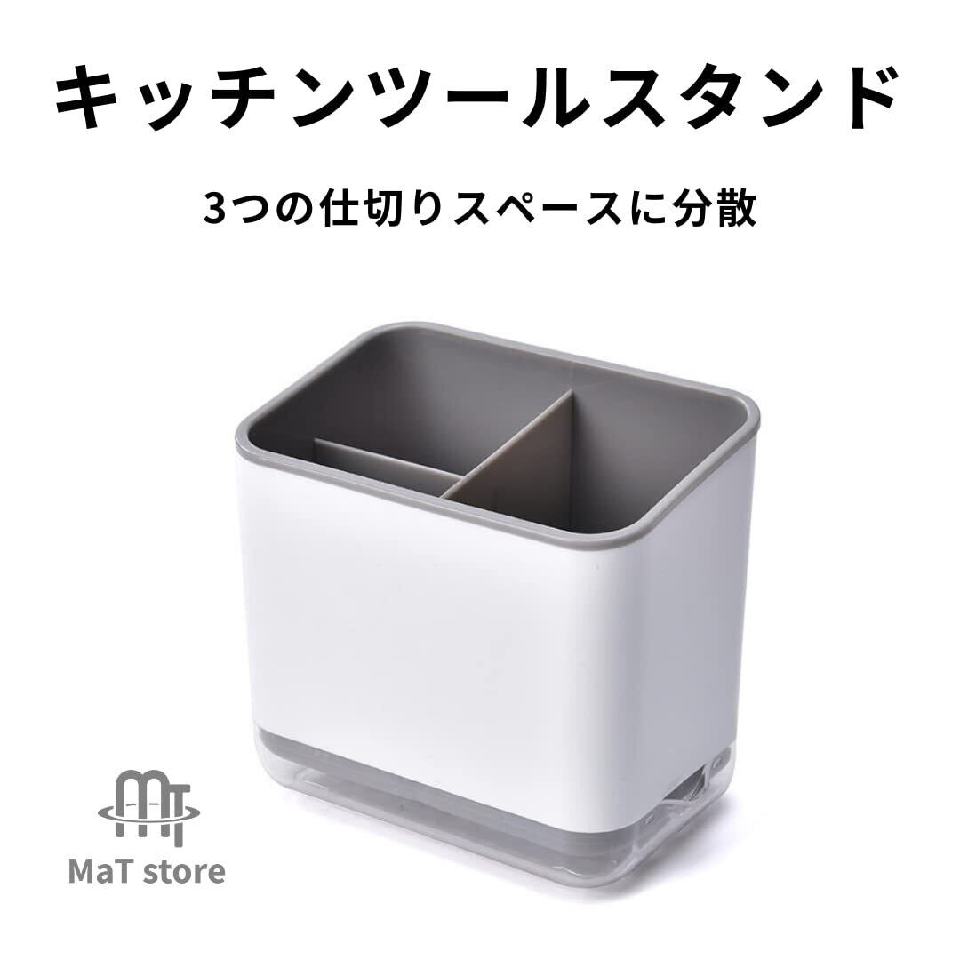 MaT store キッチンツールスタンド 収納 キッチン用品 水切り 箸立て ホワイト×グレー
