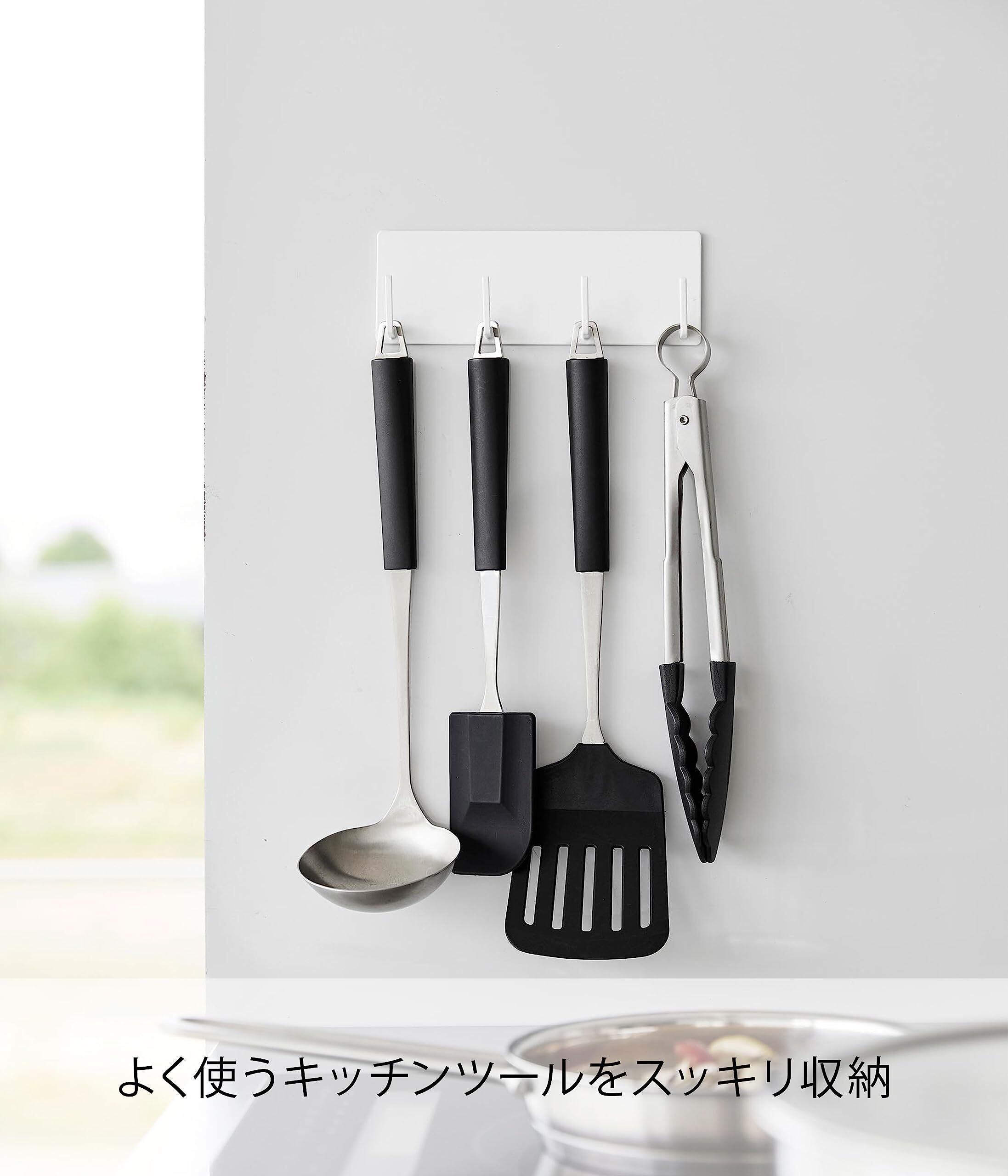 山崎実業(Yamazaki) マグネット キッチンツールフック 4連 ホワイト 約W16.5×D3.5×H6cm タワー tower 浮かせる収納 簡単取付 3687
