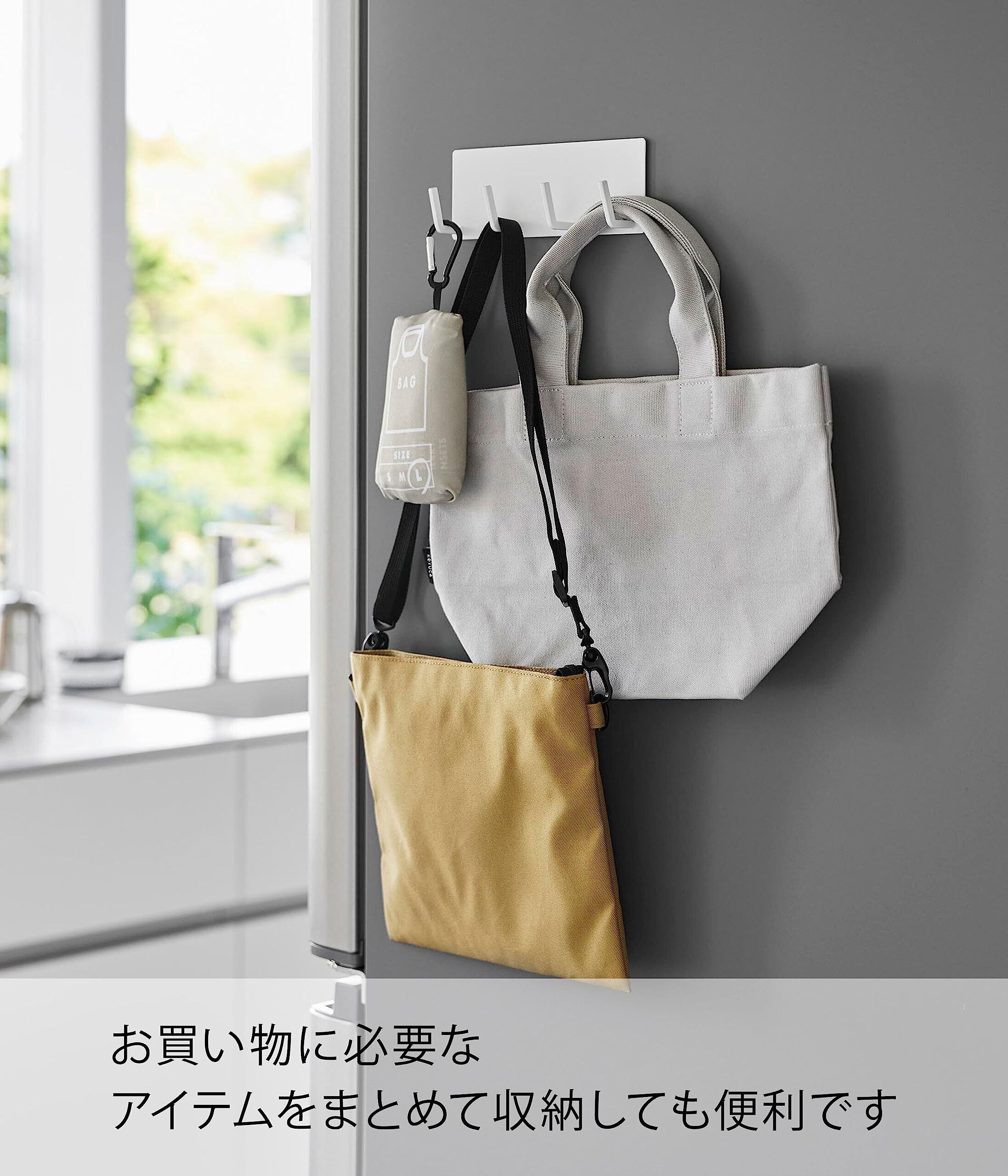マグネットがつくスチール壁面に簡単に取り付けできる4連のフック。