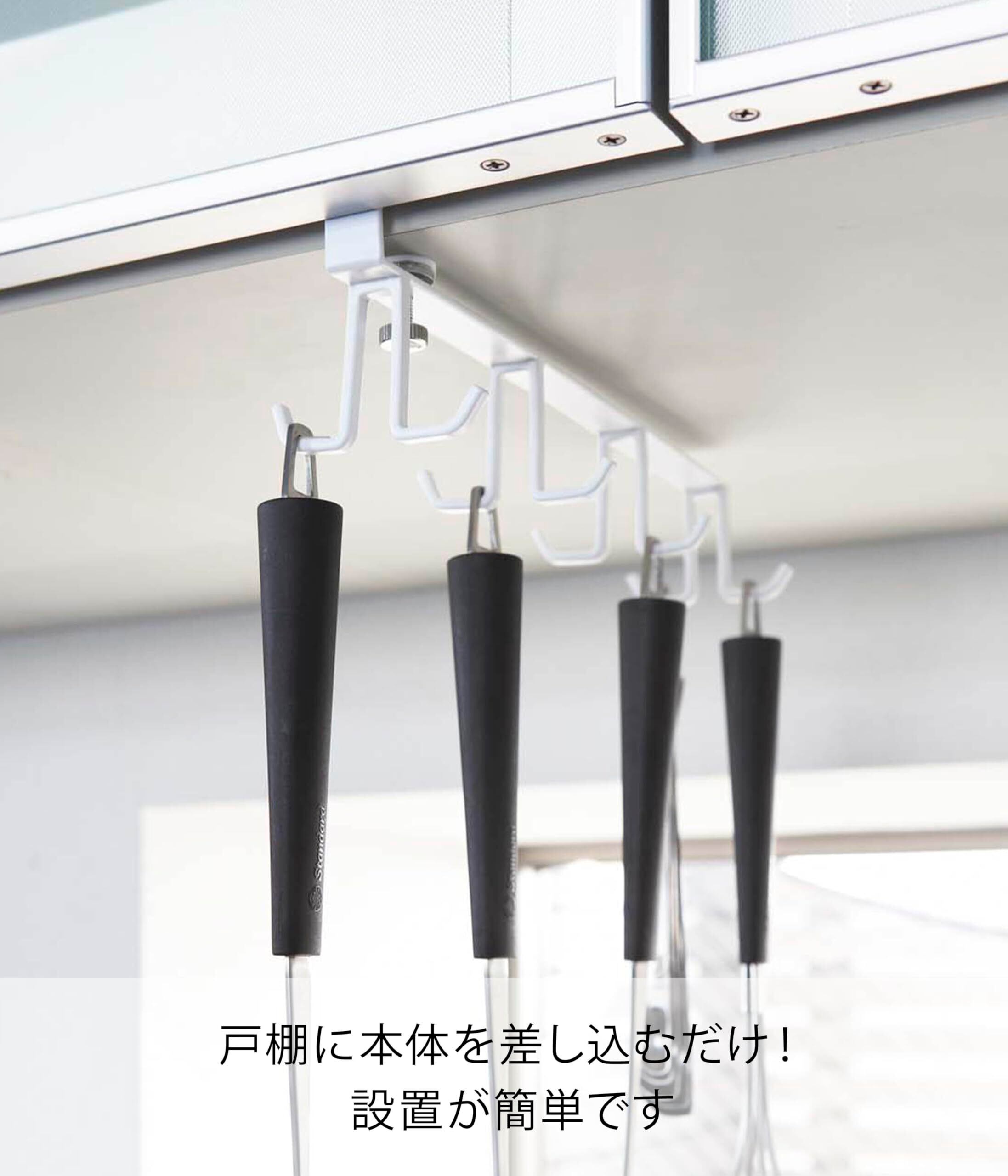 ●吊り戸棚に簡単取り付けのキッチンツールフック。ネジでしっかり固定!