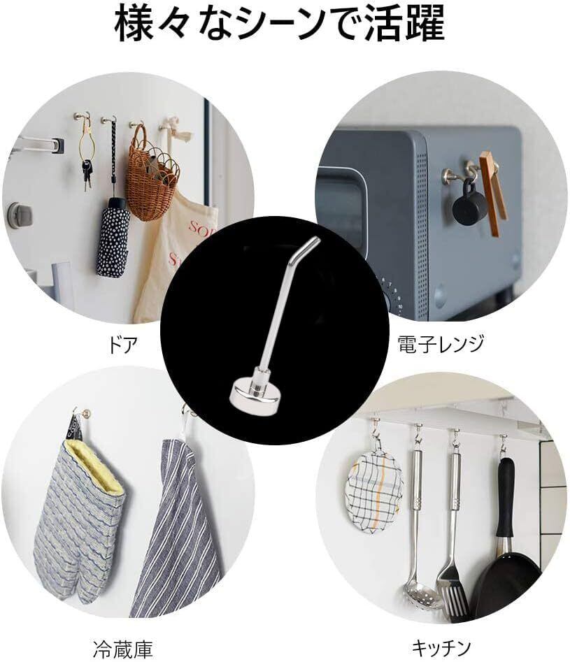 【小さいのに超強力】驚異の超強力吸着力!従来の吸盤式のフックより断然強力です。腐食&サビに強い。取り外しが簡単なマグネット仕様なのでスペースに合わせてお好みの配置に可能。