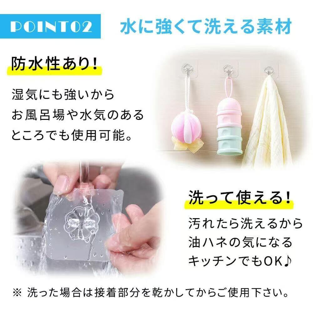 強力粘着フック 12枚入り 6×6cm 耐荷重10kg 穴あけ不要 工具不要 壁を傷つけにくい 浴室収納 キッチン収納 壁紙対応 コンクリート 鍵かけ キーホルダー 帽子掛け 接着 透明 クリア キッチン 台所 浴室 用具 バスルーム 繰り返し 賃貸OK 壁掛けフック (12)
