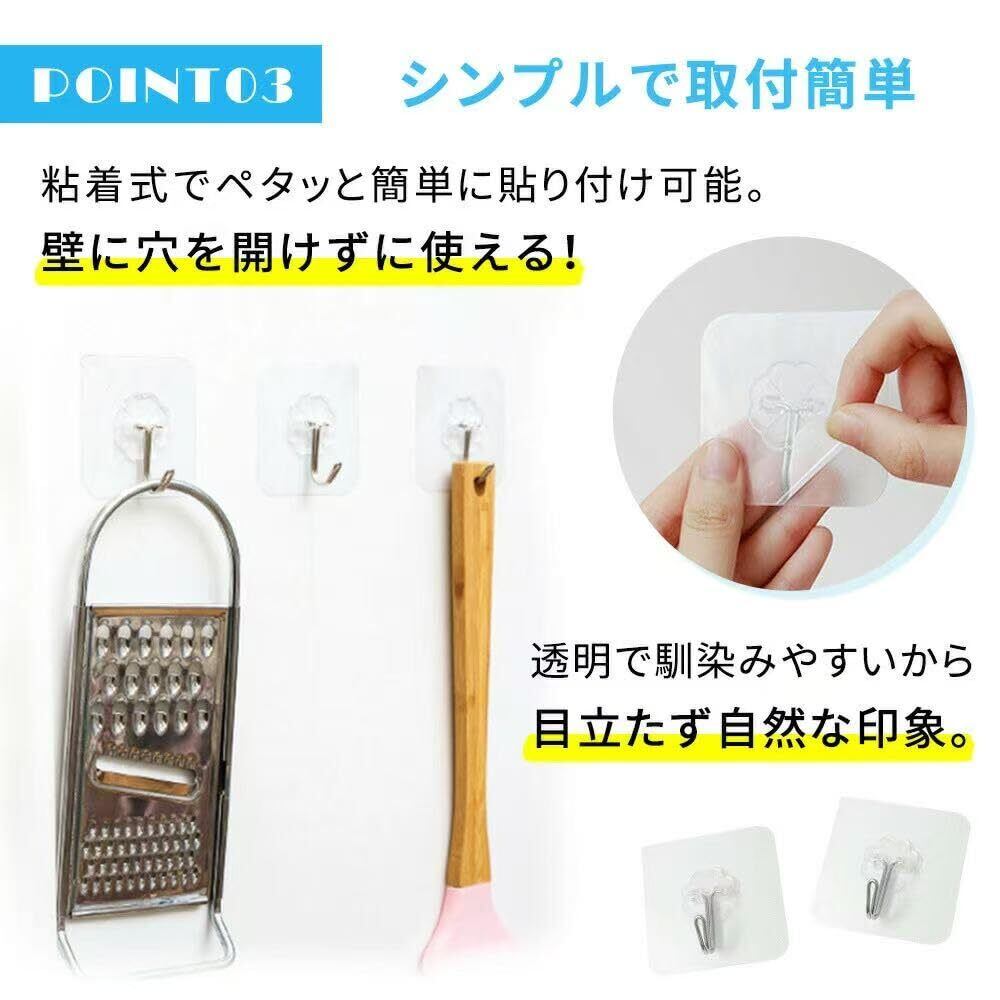 注意事項 シールに対しフックが若干曲がって取付られていますが、使用に問題はありません。 製造時の接着剤が付着しているものもありますので気になる方の購入は遠慮下さいませ。 耐荷重は最大値です。 貼付面の汚れや油は綺麗に拭き取って下さい。油、水分や汚れがあると粘着力が低下します。 貼り替えた粘着フックは粘着力が低下します。 フックに掛けたものが落下し破損する場合もありますので、特に重い物を掛ける場合は落下することを想定して、破損や怪我のないように万全の注意を払って下さい。 落下時の破損・怪我等は自己責任でお願いします。 お使いのモニターの発色具合によって、実際のものと色が異なる場合がございます。