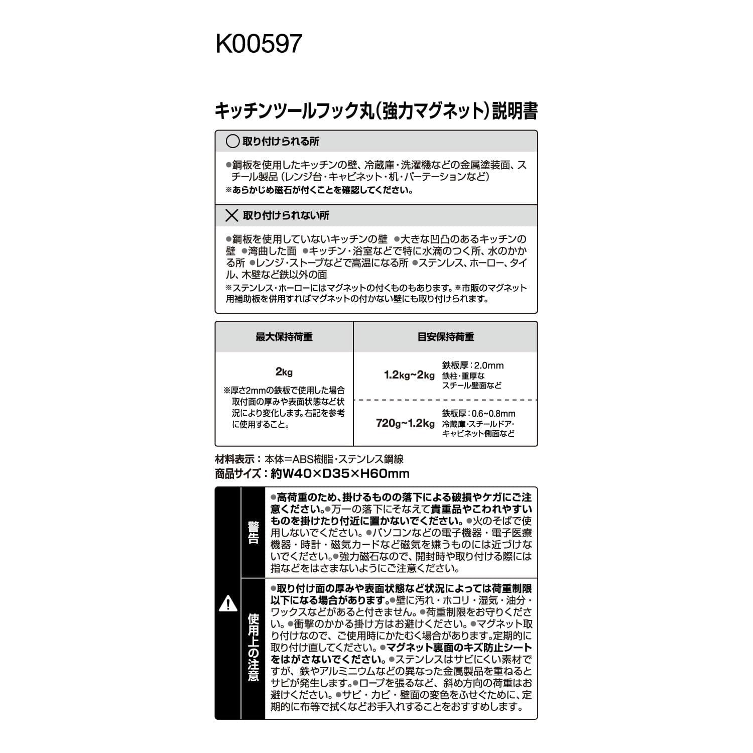 ●最大保持荷重2㎏、2個入