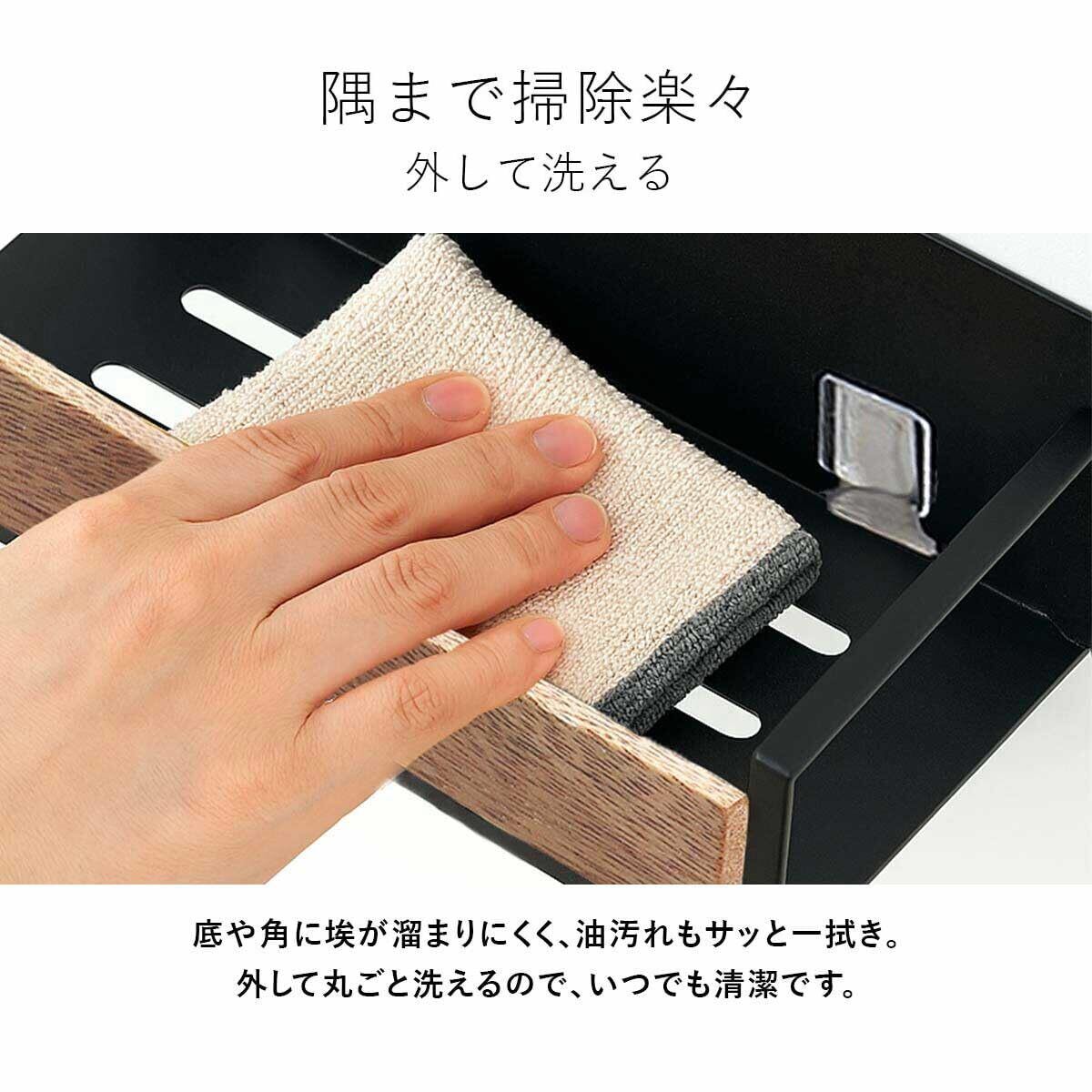 油汚れに強いフィルムフックで場所を問わず簡単に安定設置が可能