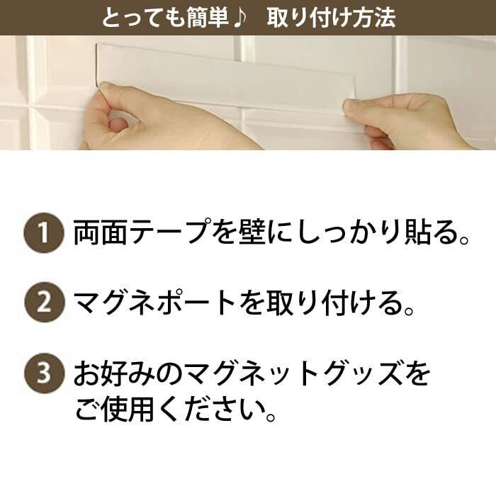 特徴:壁に穴をあけることなく、お好みの壁にマグネポート(プレート)を取り付けることができます。壁にキズ等をつけたくない箇所や穴をあけたくない賃貸住宅でも安心です。