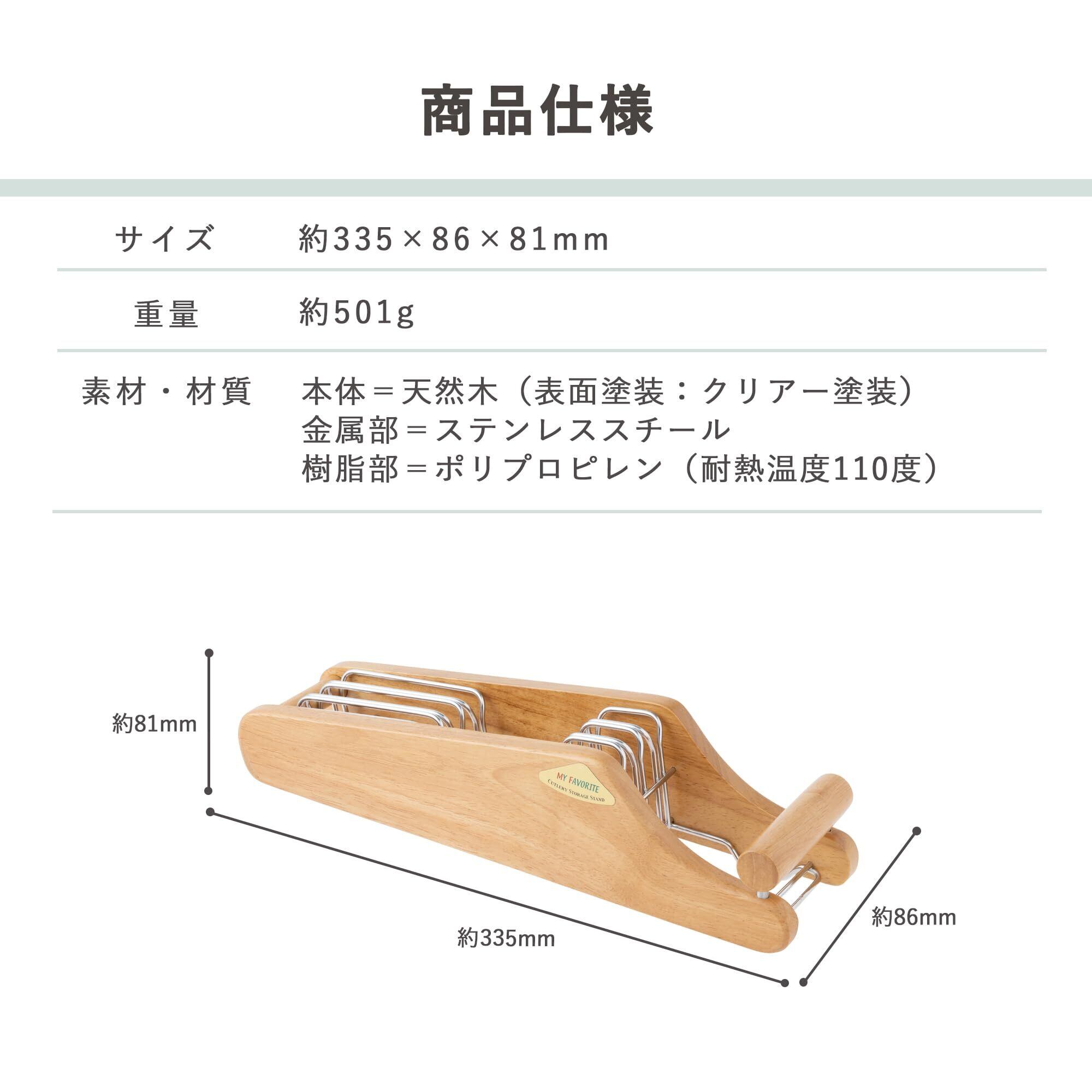 素材・材質:本体=天然木(表面塗装:クリアー塗装)、金属部=ステンレススチール、樹脂部=ポリプロピレン(耐熱温度110度)