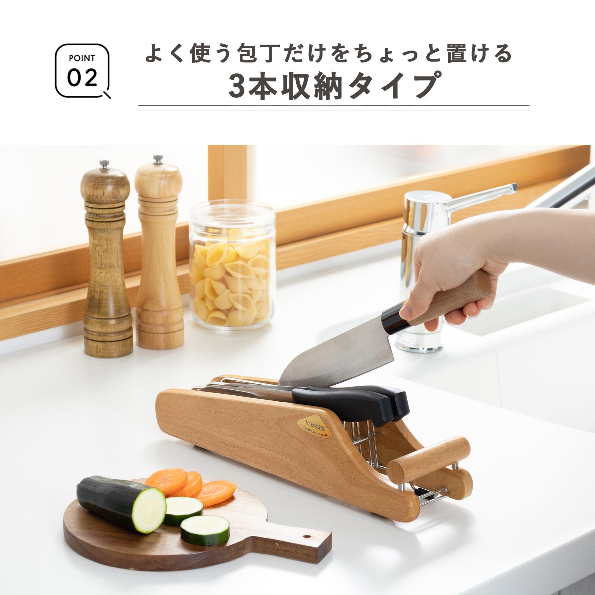 包丁3丁を、安全・コンパクトに収納。