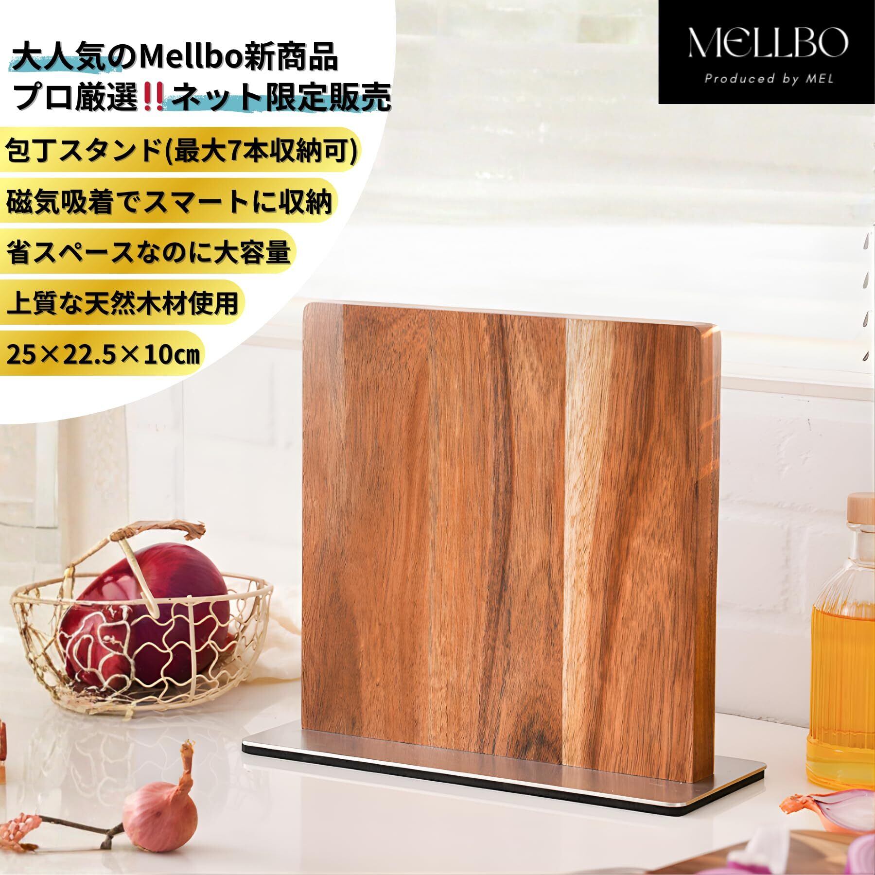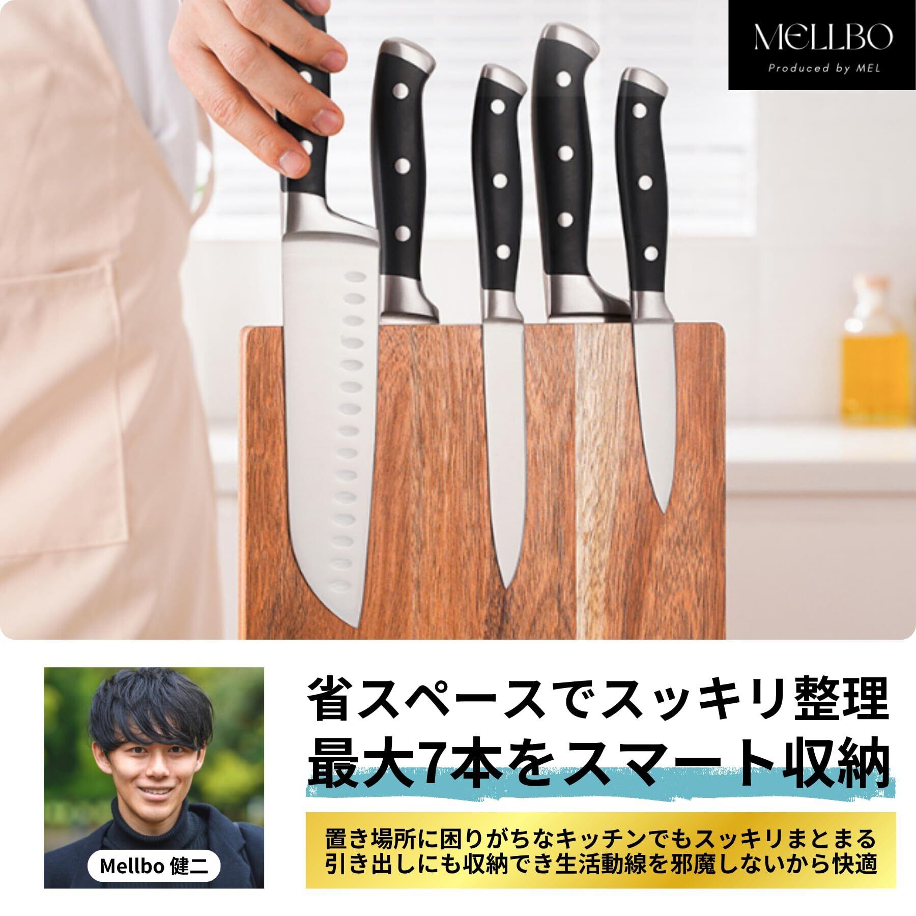 【見せる収納にオススメ】天然木材を使用することで木目がアクセントになり、見せる収納としてキッチンの上に置いて使用することができます。また、強力磁気吸着でスタイリッシュに包丁をまとめて収納ができます。