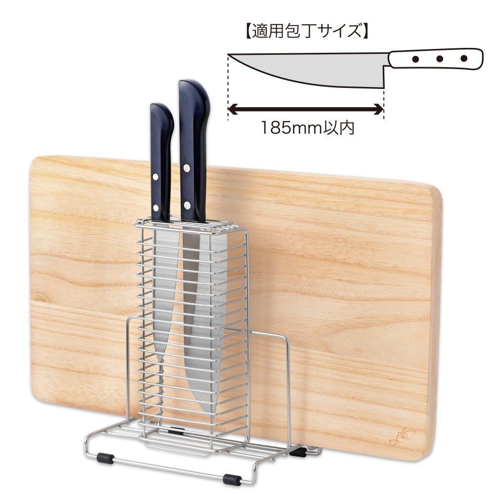 包丁2本、まな板1枚をすっきり収納できます。