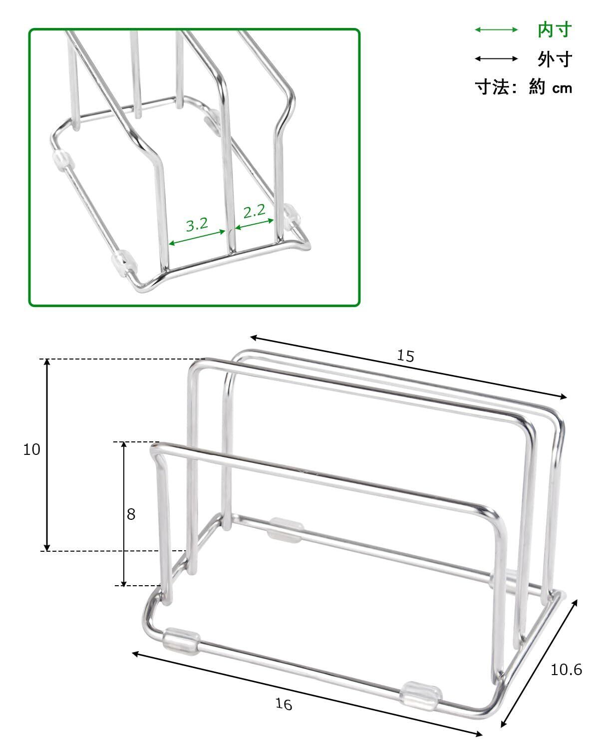 2 段まな板ラック,まな板置き,キッチン収納ラック,ステンレススタンド, 16x10.6x11.6cm,まな板の厚さ 3cm/2cm に対応