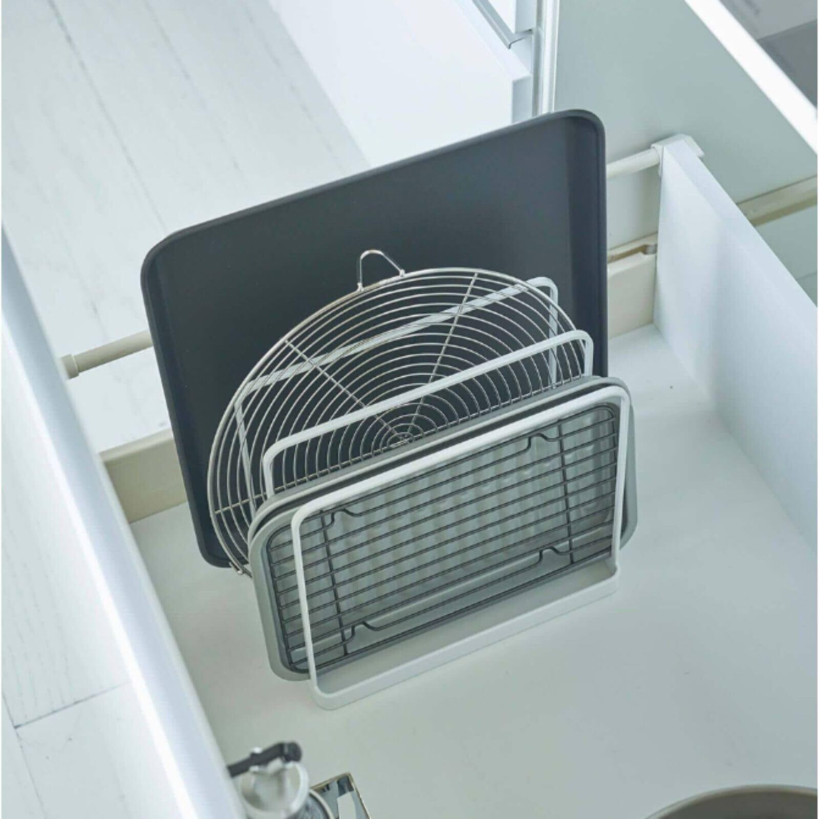 【省スペース&収納力抜群!】収納場所に困るホットプレートやまな板、フライパンやお盆など、平べったくて大きいものをスマートに収納できる優れもの。