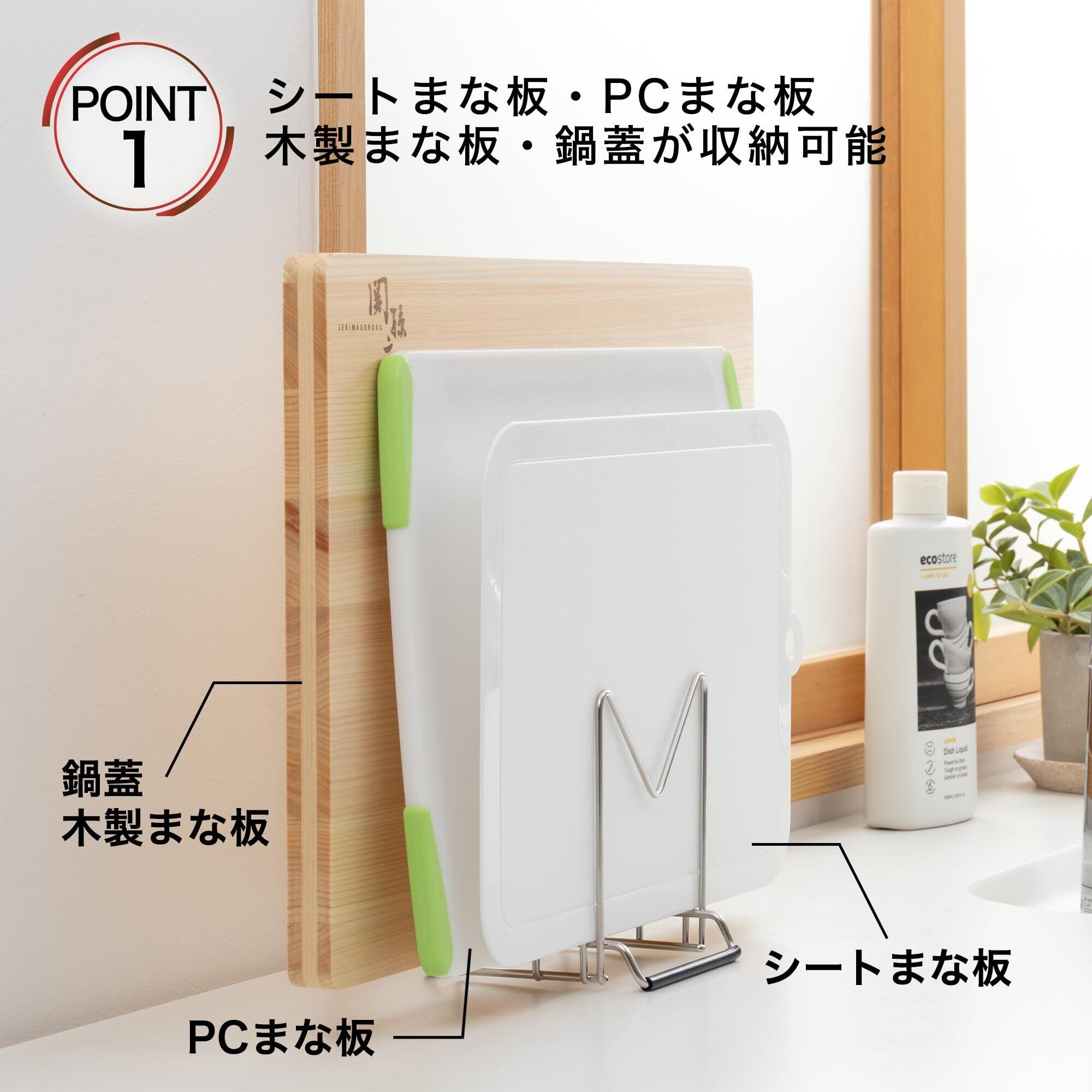シート、プラスチック、木製まな板や鍋蓋が収納できる