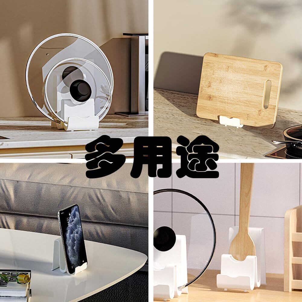 【多目的】鍋蓋やまな板専用設計で、ヘラやスプーンなどのキッチン小物も収納でき、キッチンスペースを最大限に活用できます。キッチンだけでなく、オフィス、リビングルームなどでもディスプレイスタンド、携帯電話やタブレットスタンドとして使用でき、多様な使用ニーズを満たします。