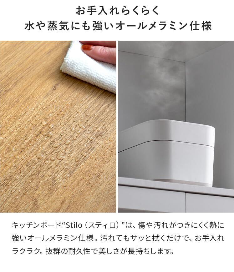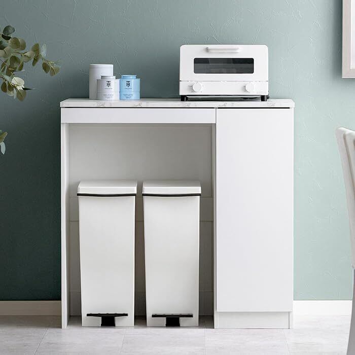 エア・リゾーム レンジ台 キッチンボード キッチンラック ゴミ箱上ラック 食器棚 ごみ箱上 ゴミ箱収納 Stilo〔スティロ〕 (ホワイト×ホワイトマーブル, ロータイプ)