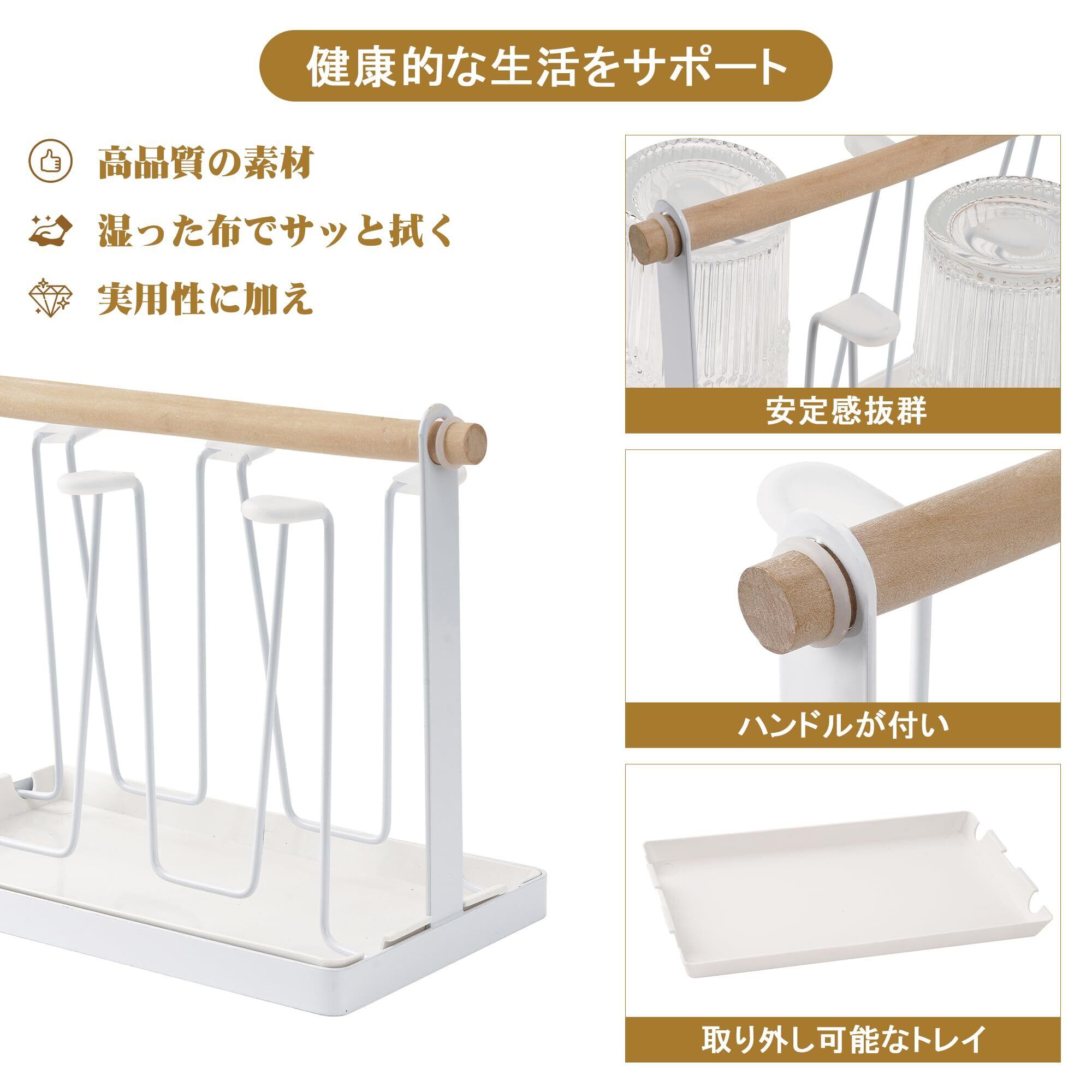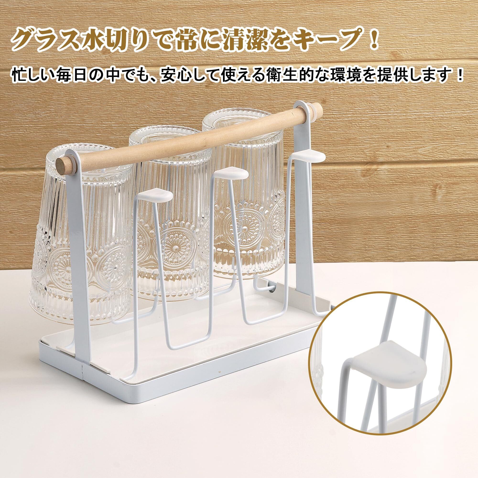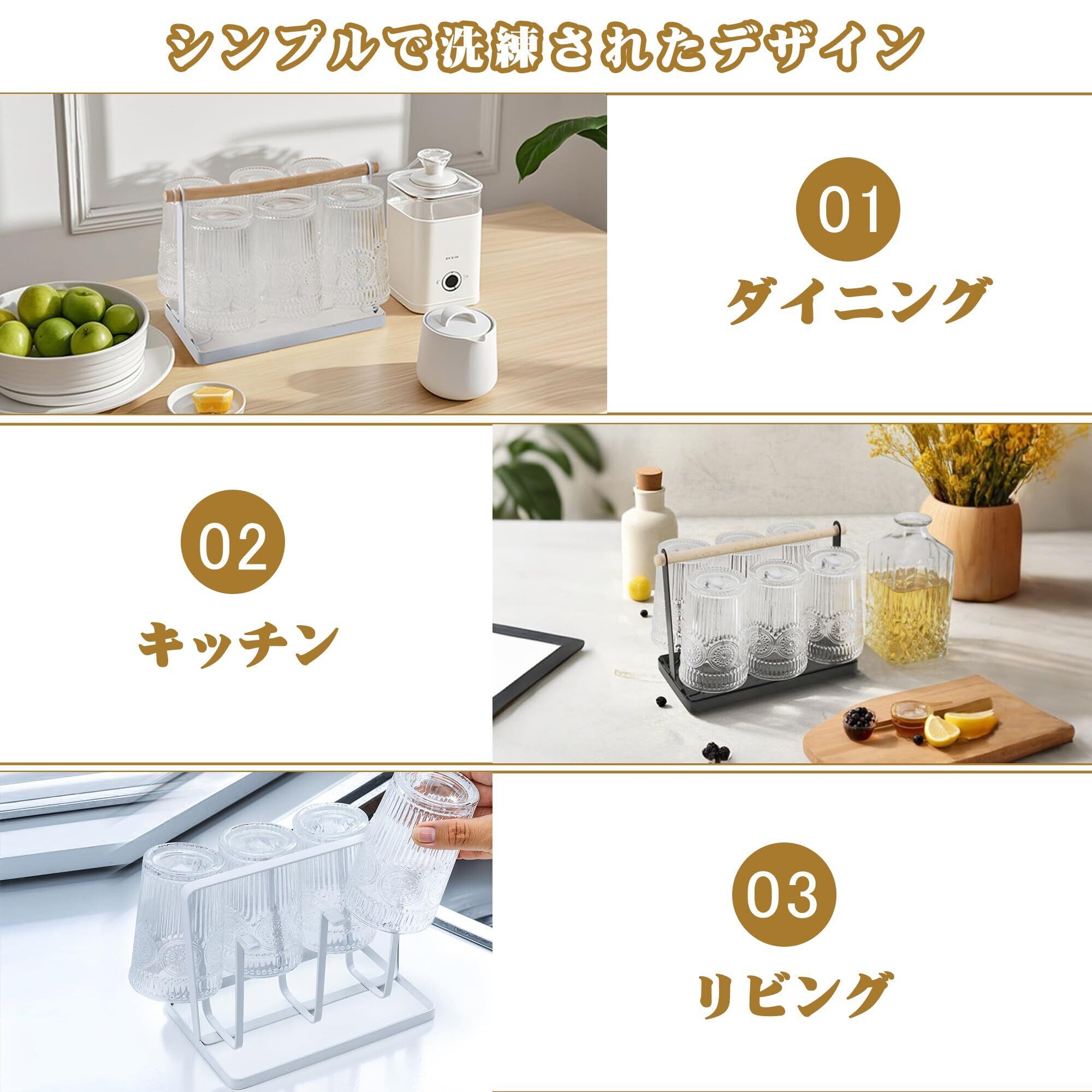 【省スペース&多機能】水切りだけでなく、カップスタンドとしても使用可能。卓上スペースを有効に活用し、キッチンやテーブルに6個のグラスが収納されます。上部には持ち手もついており、簡単に移動でき、必要な場所へ簡単に持ち運ぶことができます。