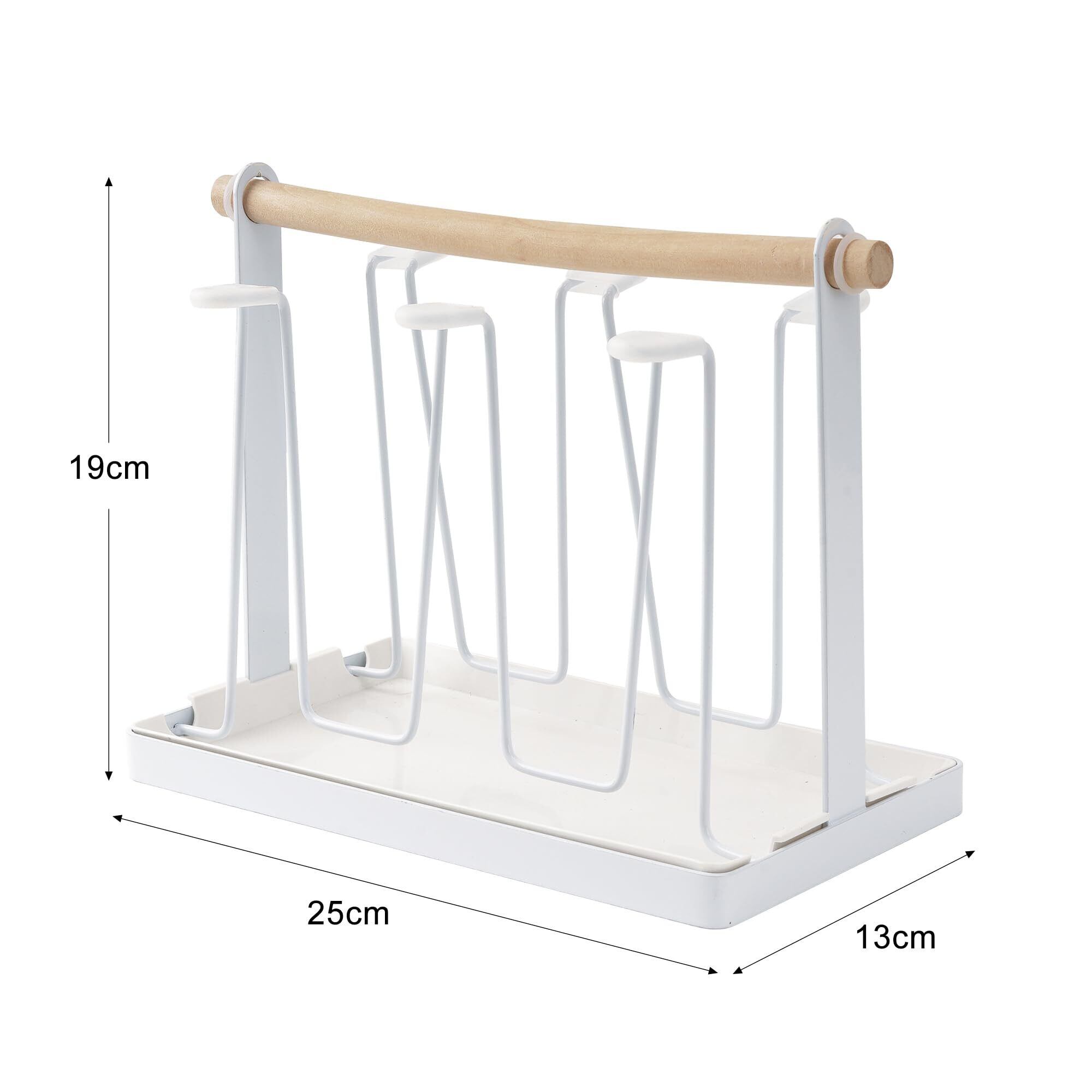 VECELO グラススタンド 6個掛け シリコン滑り止め付き グラス置き コップ収納 北欧風 杯子架 カップ乾燥 コップ 収納 水切り おしゃれ スリム キッチン収納 26cm×13cm×19cm ホワイト