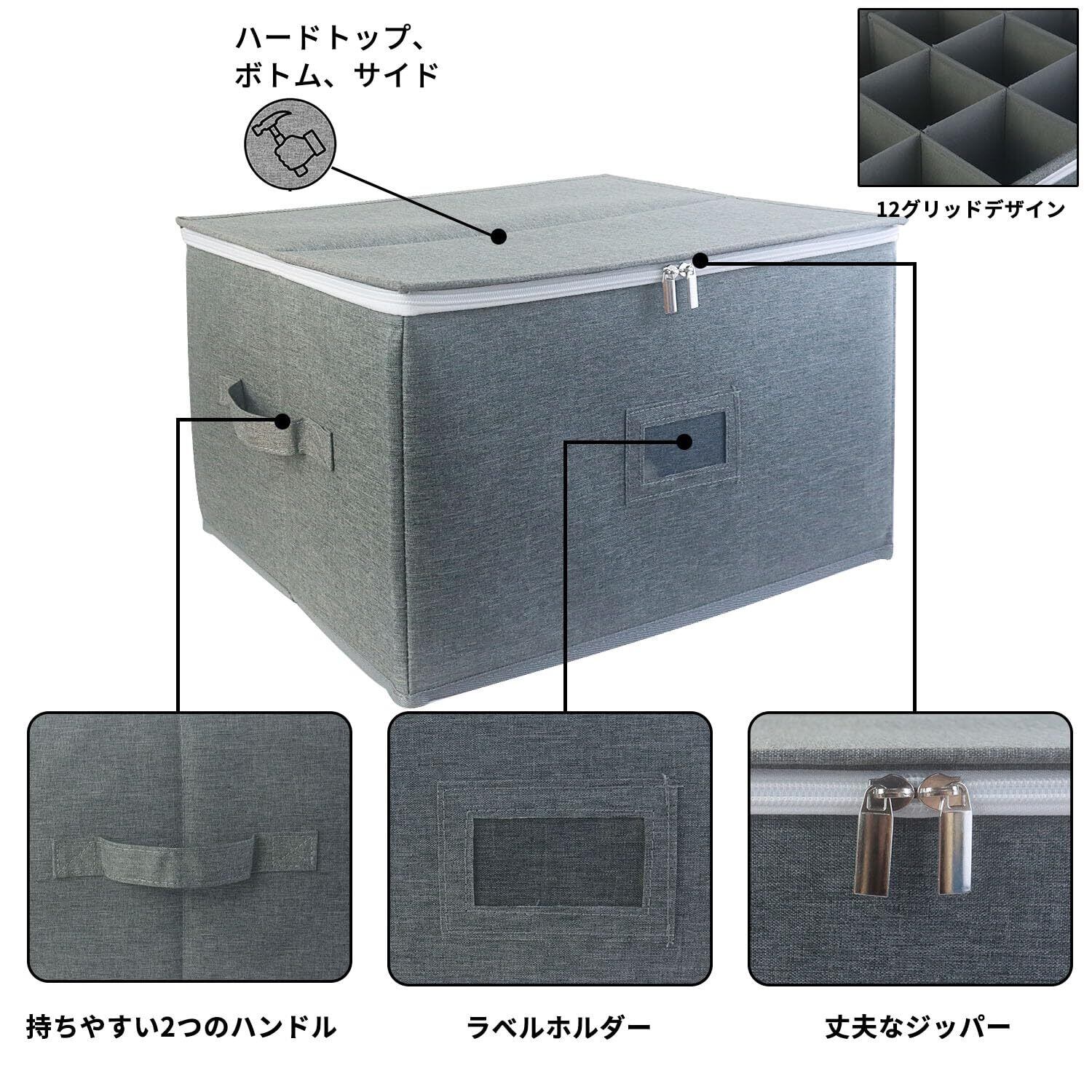 【ステムウェア収納容器】- 大切だけどあまり使わないワイングラスをしまっておけます。クリスタルグラスを埃から守ります。パーティーの後は、ワイングラスを収納するのに重宝します。カジュアルなシーンでもフォーマルなシーンでも、この収納ボックスがあれば、食器棚、バーエリア、テーブルセッティングの準備や片付けが簡単にできます。仕切り付きワイングラス収納ボックスは、最大12個のワイングラスを収納できます。サイズは長さ17インチ x 幅13インチ x 高さ10インチで、パッド入りのコンパートメントが12個あり、各コンパートメントの寸法は4 1/4インチ x 4 1/4インチです。