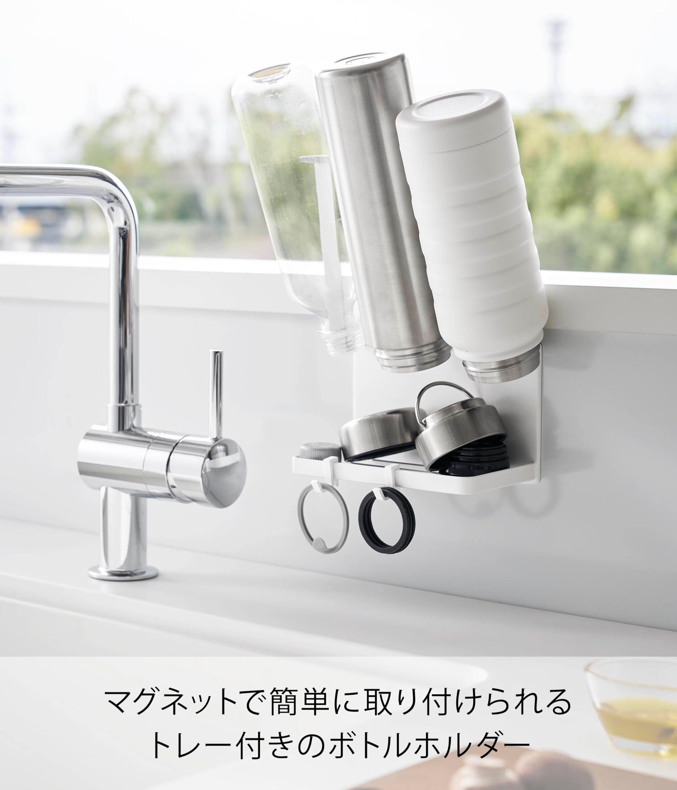 山崎実業(Yamazaki) マグネット ボトルホルダー & トレー ホワイト W16.6×D8.3×H23cm プレート Plate 浮かせる収納 水切り グラススタンド 1659