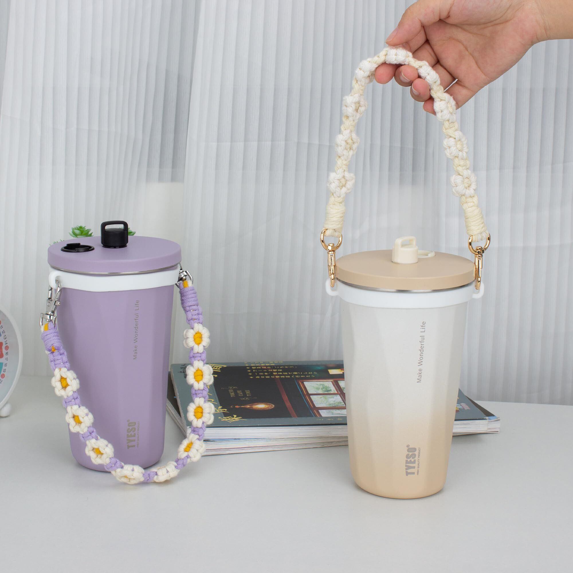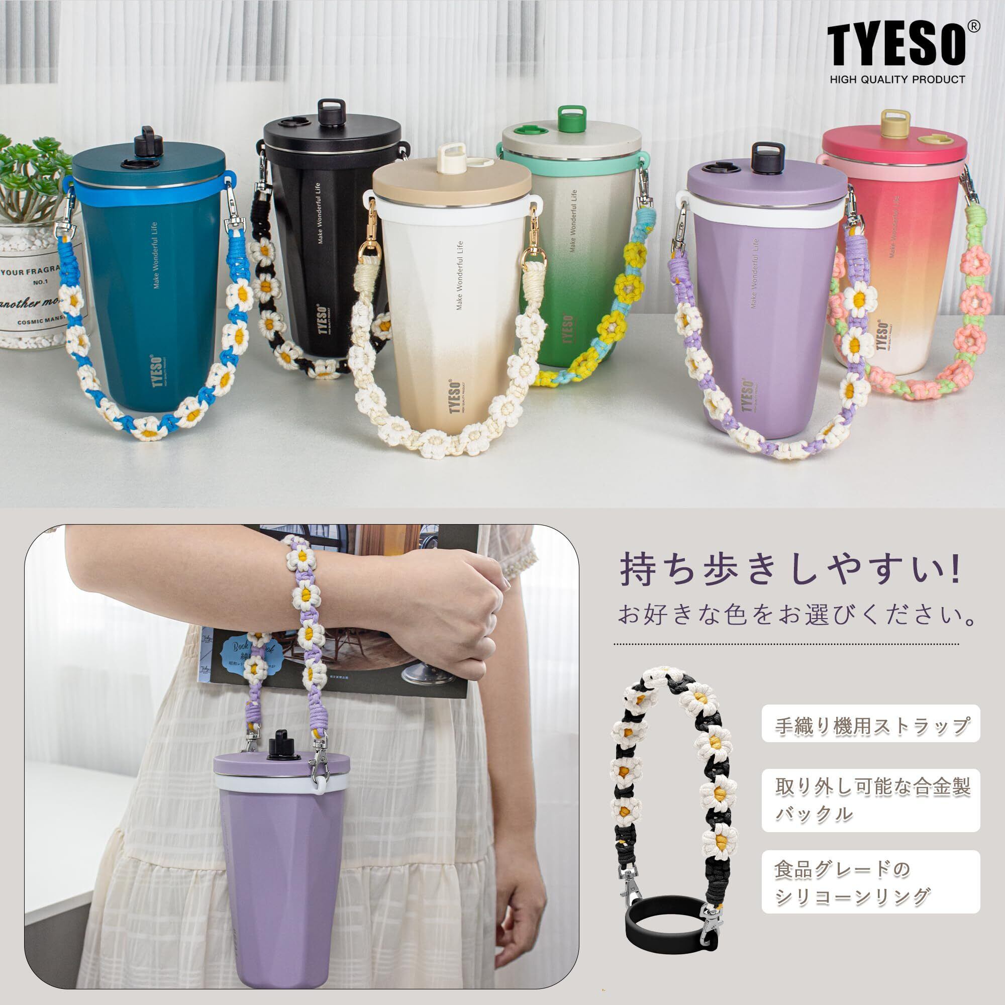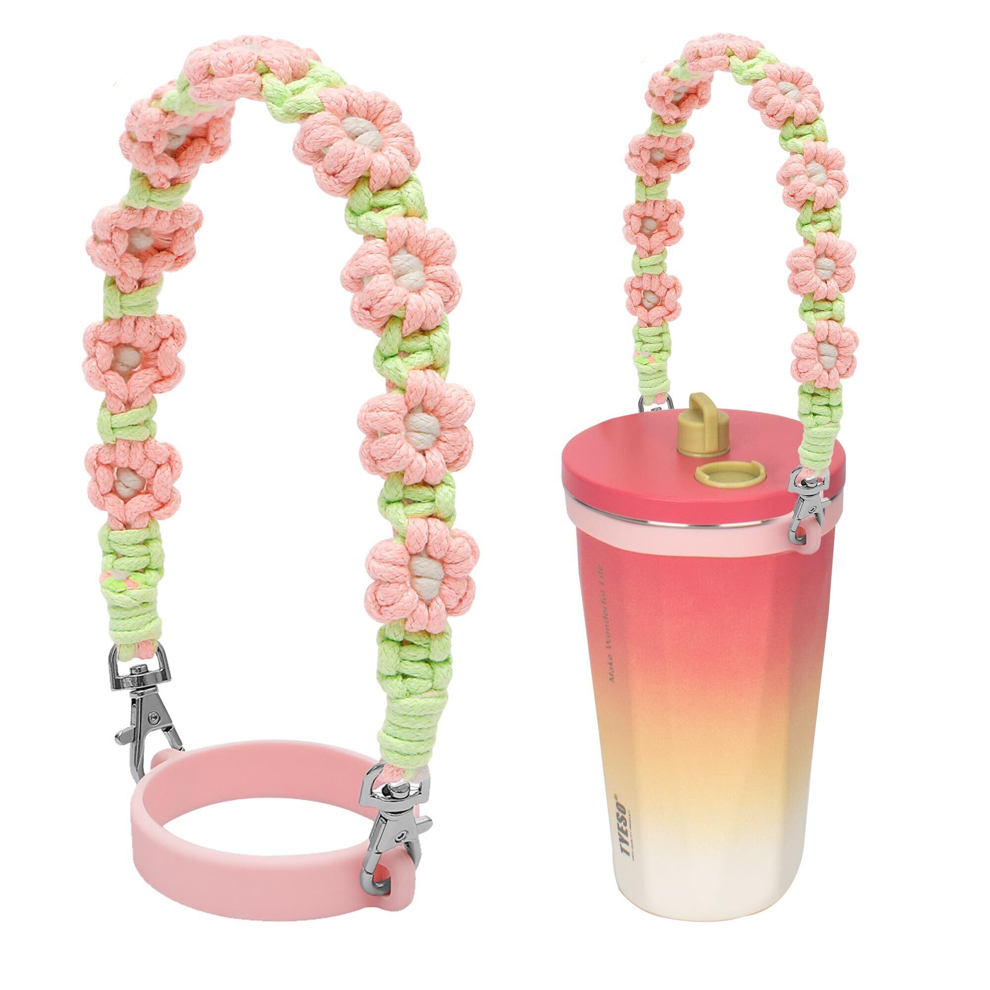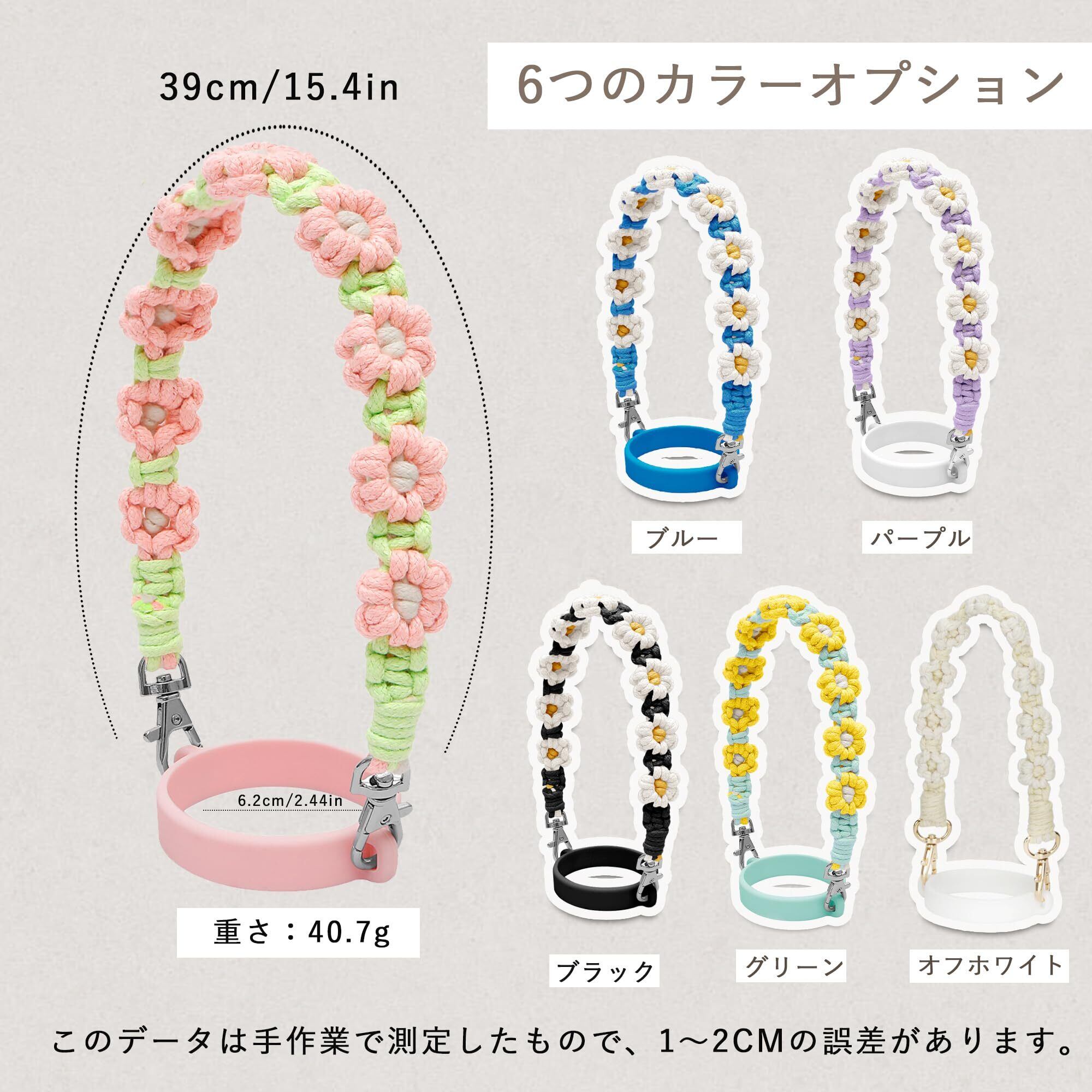 TYESOドリンクカップホルダー コットンロープ シリコーン製ストローホルダー付き 持ち歩きタンブラー可愛い花のデザイン